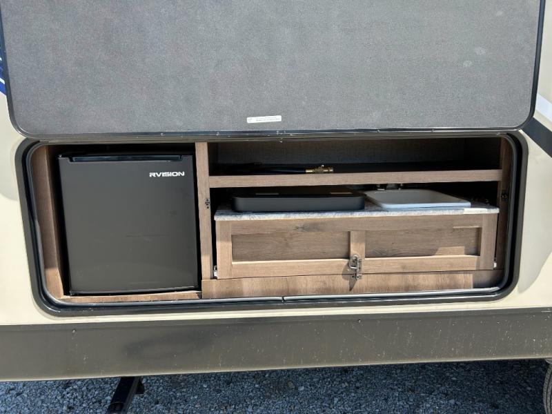 One of the best features of this KZ RV travel trailer is the fully-stocked kitchen that allows you to keep everyone full and satisfied, no matter where you've traveled. The 3-burner range top with oven, gives you a place to whip up your favorite cookie recipe, and the 8 cubic foot stainless steel refrigerator allows you to store those sweets so that they stay fresh for the duration of the trip. If you enjoy nature and want to soak it up as much as possible, then you will undoubtedly be spending your evenings outside underneath the electric awning with LED lights, listening to happy melodies playing on the exterior speakers.