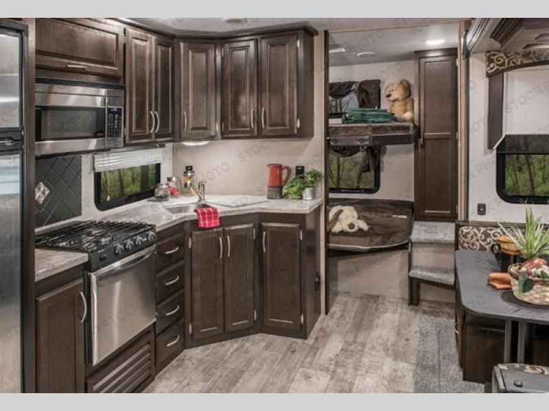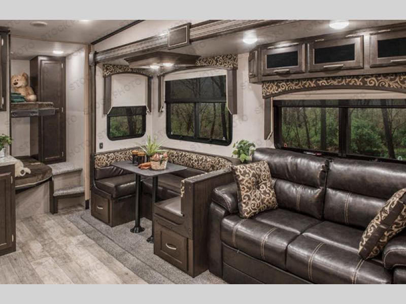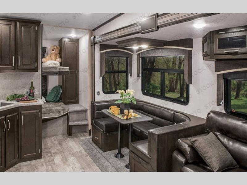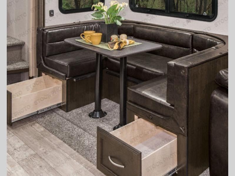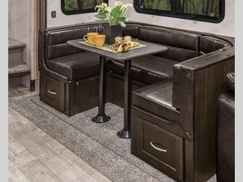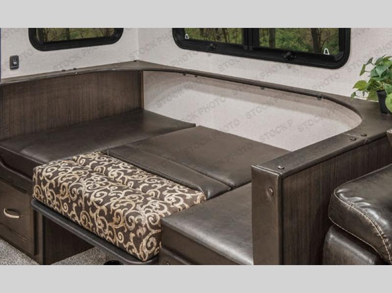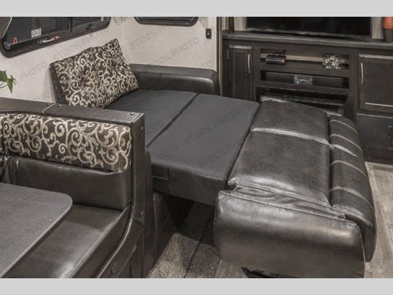 If you are looking for a unit that will provide enough sleeping space for ten people, then look no further than this Durango 1500 fifth wheel. With its queen-size bed, set of double bunk beds, and U-shaped dinette, everyone will have their own comfortable sleeping accommodations each night. Roasting marshmallows out by the campfire will be enjoyable underneath the two 14' electric awnings with LED lights, and whenever you get thirsty, you will find it convenient to grab an icy cold beverage from the outdoor kitchen.
