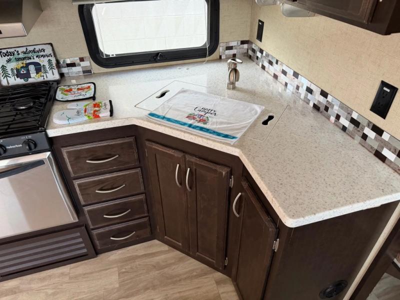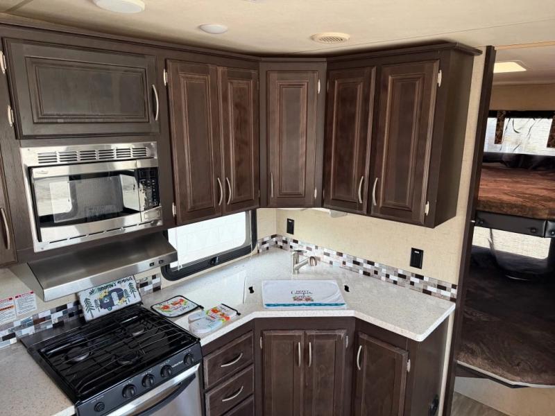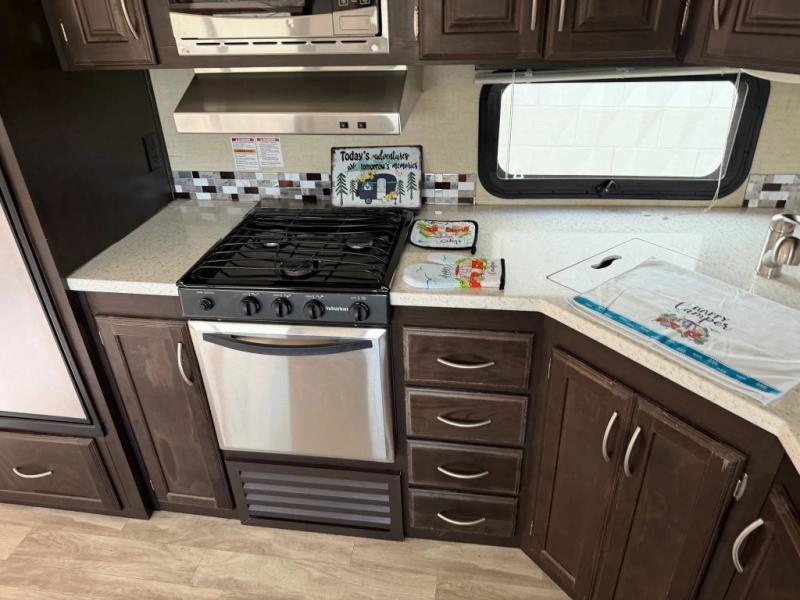 If you are looking for a unit that will provide enough sleeping space for ten people, then look no further than this Durango 1500 fifth wheel. With its queen-size bed, set of double bunk beds, and U-shaped dinette, everyone will have their own comfortable sleeping accommodations each night. Roasting marshmallows out by the campfire will be enjoyable underneath the two 14' electric awnings with LED lights, and whenever you get thirsty, you will find it convenient to grab an icy cold beverage from the outdoor kitchen.