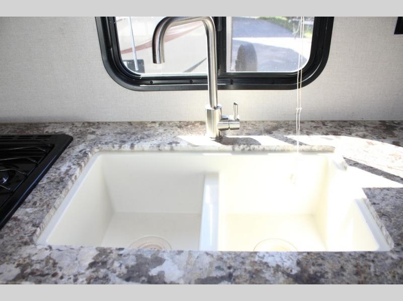 Trying to decide which RV you will choose next? Just imagine you and your family of five camping in this Sportsmen LE 241RLLE travel trailer. The double entry bath allows you quick access at night from the front bedroom, and access from the hallway for your overnight guests. The 70" sofa can be used as a seating area during the day as well as a sleeping space for two at night. The 42" booth dinette can be used in the same way but comfortably sleep one. Store all of your camping or hiking gear either in the trunk door or pass through storage.