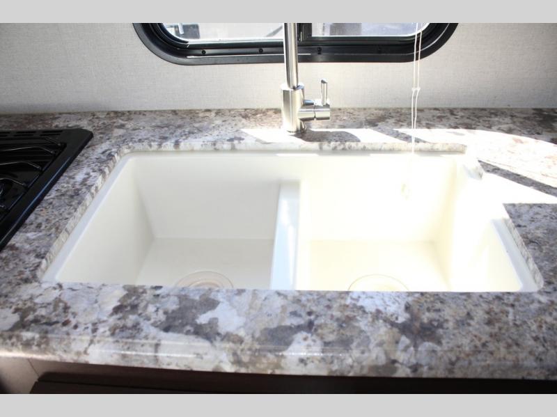 In any KZ Sportsmen LE travel trailer you will find tremendous value in overall quality, and innovative features. A few of these features are seamless countertops, an optional 10 cu. ft. stainless steel refrigerator, cavernous under-bed storage with gas struts for an effortless, easy-lift access, and a multi-media stereo with DVD, Bluetooth, and NFC wireless connectivity. Each unit features Armstrong tough guard linoleum which is backed by a 3-year cold crack warranty. They are constructed with a K-Z exclusive tough shield .030 exterior metal, a one piece seamless roof with SuperFlex roofing material, 3/8" fully walk on roof decking, and a diamond plate rock guard. The key-alike system offers not only the convenience of one lock for all applications, but security as well, which prevents other campers with standard industry keys from opening your storage compartments or entry doors!