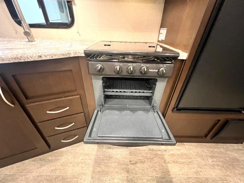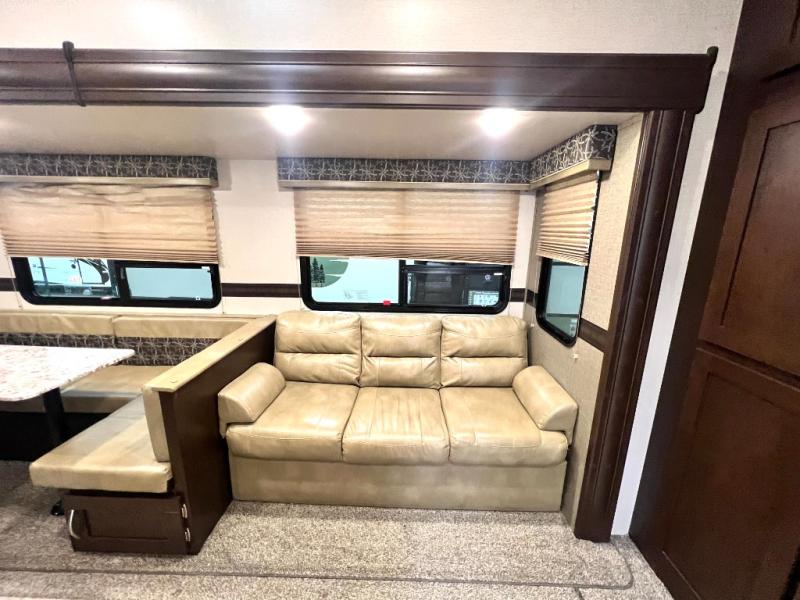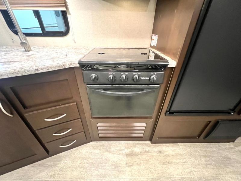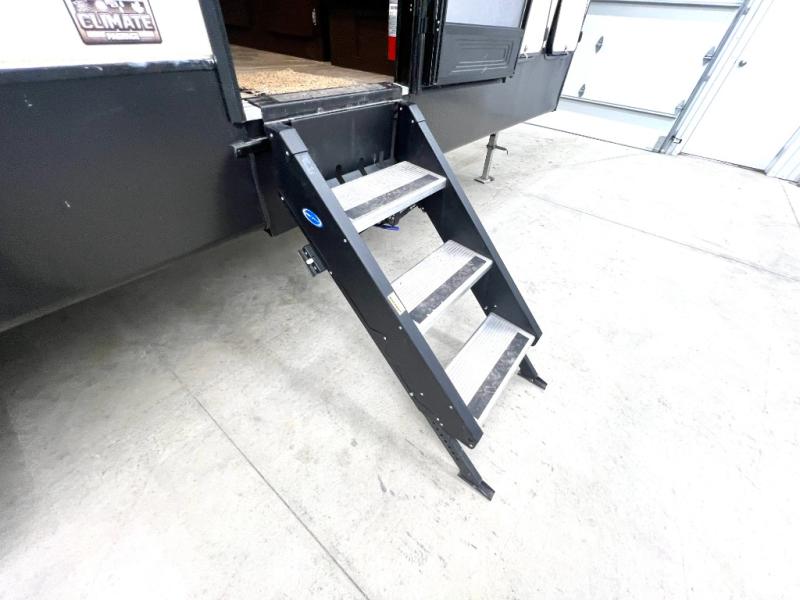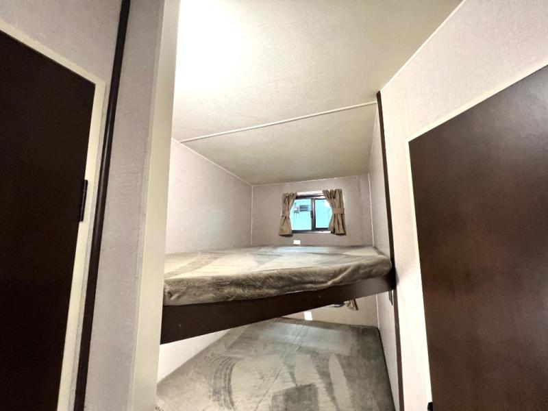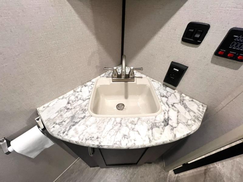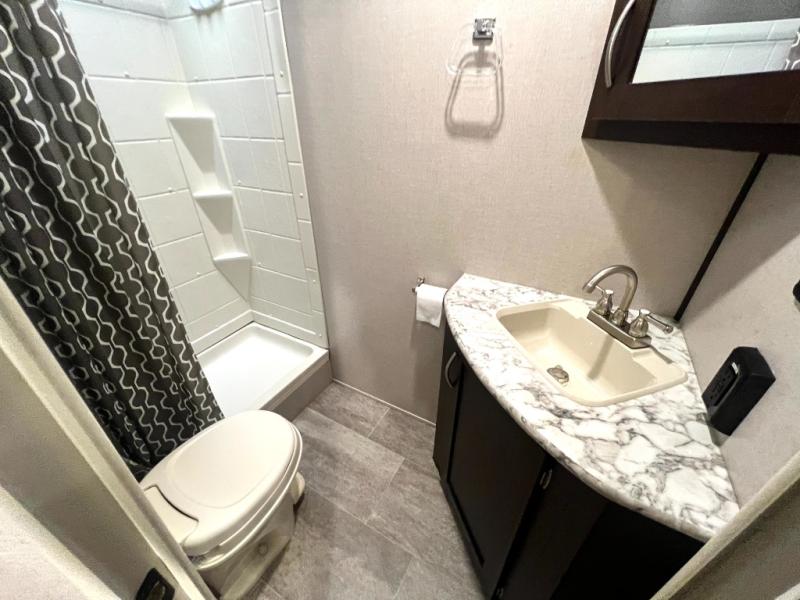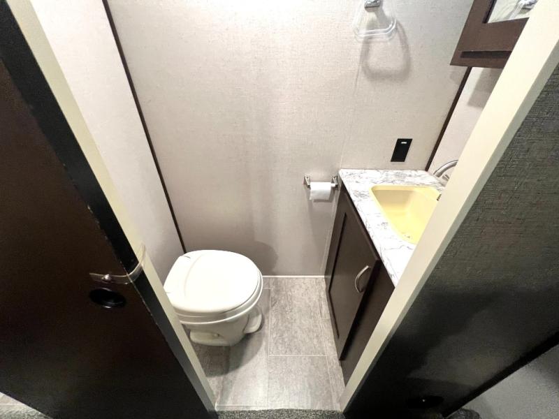 Looking for a fifth wheel with a bath and a half, bunk beds, and an outside kitchen? This Sportsmen fifth wheel has everything you want, plus much more. Starting with the full kitchen amenities inside, and an outside kitchen as well. The chef can choose to cook indoors or outdoors which ever they decide. The living room slide includes seating as well as extra sleeping space. The kids will have easy access to the full bathroom next to the 51" x 75" bunk beds, and the owners will have a half bath inside their bedroom, now that's convenient! Take a look today!
