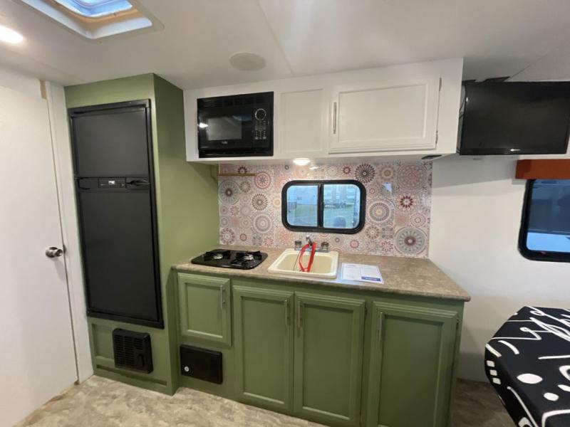 This KZ Sportsmen Classic 180QB is perfect for a couple that wants a camping getaway. The layout for this travel trailer combines comfort with functionality. It is provided with a cozy queen bed that has nightstands on each side. The 24" LED TV is conveniently placed by the bed so that you can relax at night with your favorite shows. The dinette is another feature that provides functionality and comfort because it can be used as a dining area, as well as be converted into a bed for sleeping. If you have equipment that you don't want to store inside the travel trailer such as hiking or fishing gear, then you can easily store them in the pass through storage.