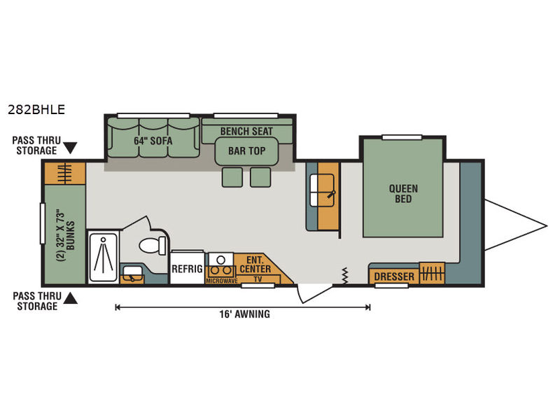 With double slides, and a rear set of bunks there is plenty of room for the family in this Sportsmen LE 282BHLE travel trailer.