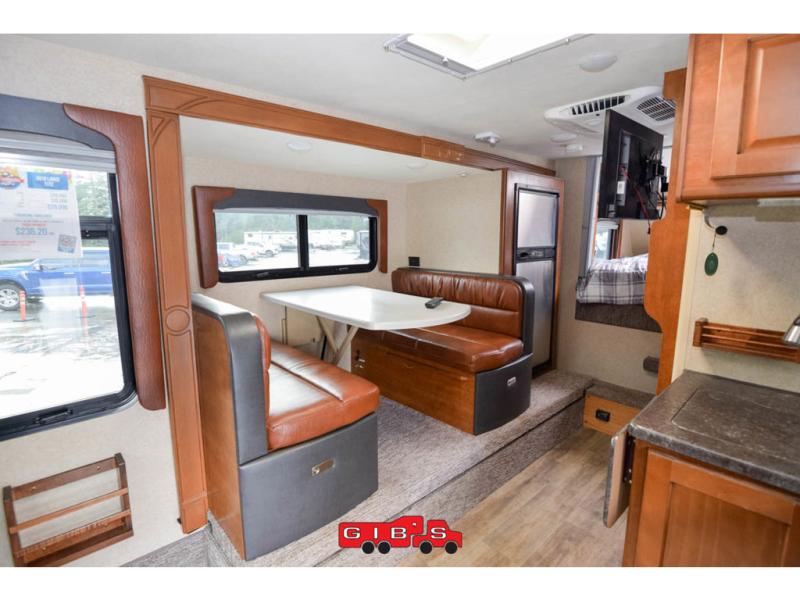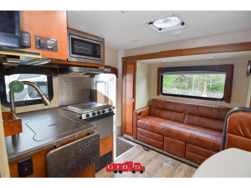This luxurious Lance truck camper is the most spacious and amenity-packed camper that Lance designs, and it comes with enough room to sleep six people during any adventure. You will certainly appreciate the extra space that the two slides bring to this camper, and since this unit comes with a fully-equipped kitchen, you will find it easy to prepare dinner each evening while using the 3-burner range top. Not only does this model come with a beautiful dry bath, but it also contains a skylight in the bathroom which allows the rays of sunlight to stream through each morning.
