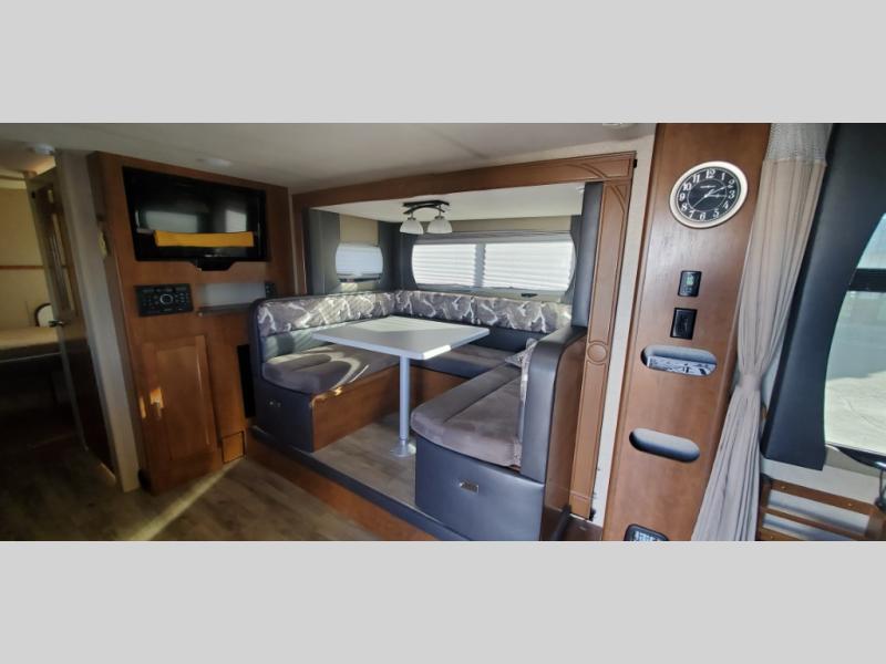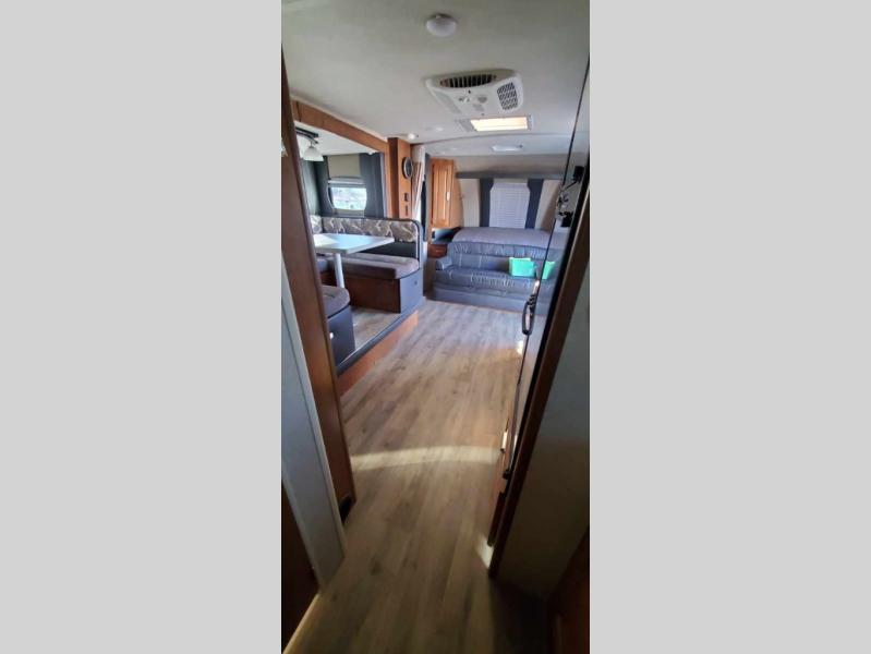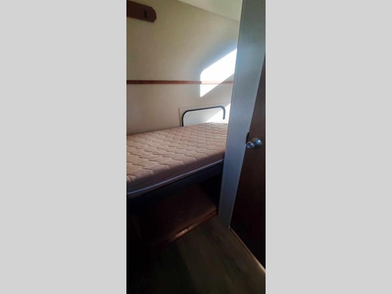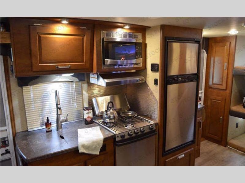 This Lance Camper travel trailer gives you the most livable space by adding in three bunk beds which help in providing you with enough room to sleep seven people in this trailer. This unit comes with a walk-around queen-size bed which is made possible because of the extra room that the single slide provides, and the three wardrobe compartments are so handy for storing all of your outdoor garments, like hiking boots and rain coats.