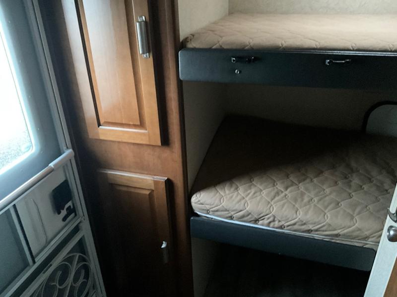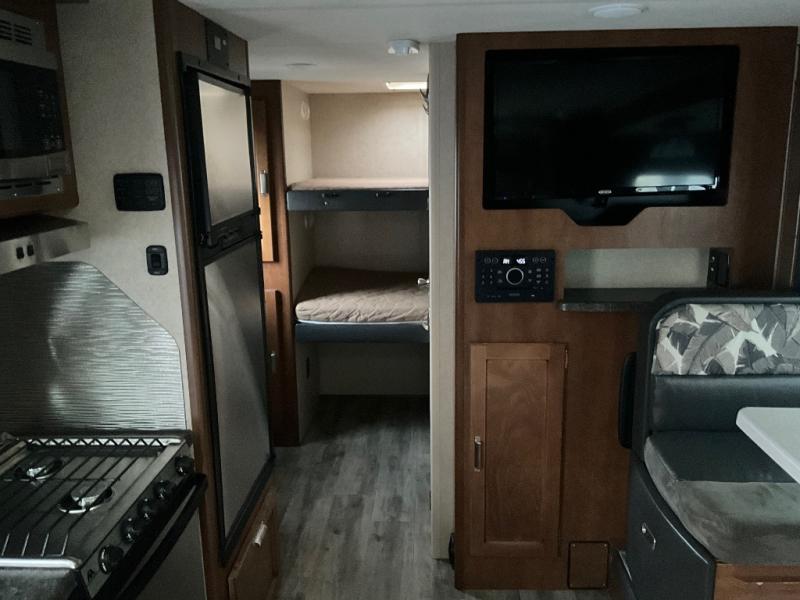 This Lance Camper travel trailer gives you the most livable space by adding in three bunk beds which help in providing you with enough room to sleep seven people in this trailer. This unit comes with a walk-around queen-size bed which is made possible because of the extra room that the single slide provides, and the three wardrobe compartments are so handy for storing all of your outdoor garments, like hiking boots and rain coats.