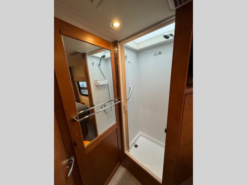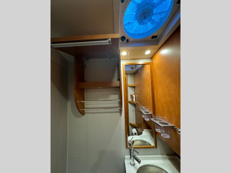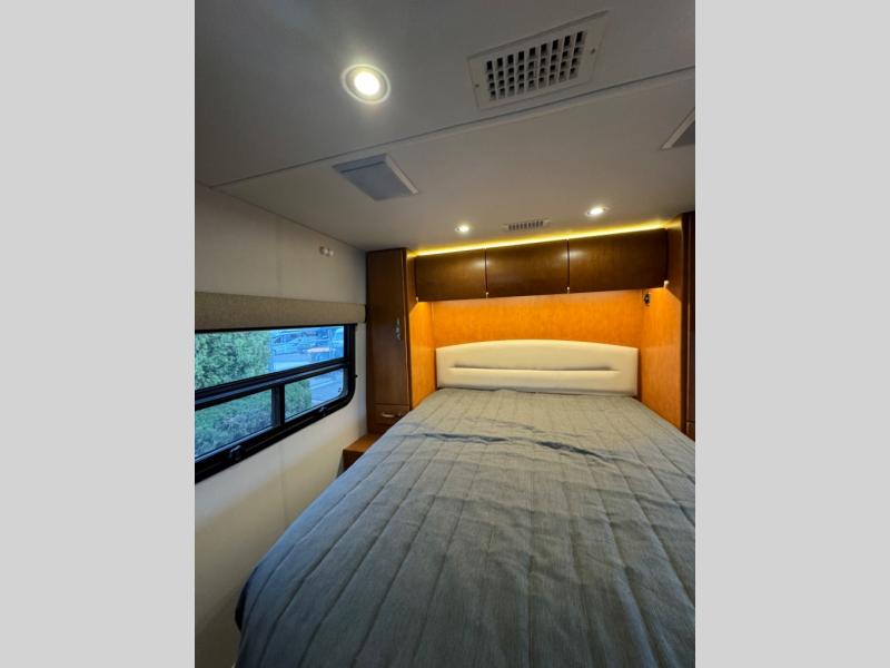 The perfect use of space in this Unity class B+ diesel coach by Leisure Travel. Model 24IB features a walk-around full bed in the rear, a split bath, and a comfortable seating area for meals and just hanging out.