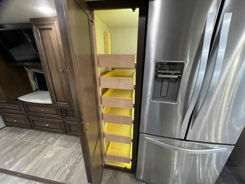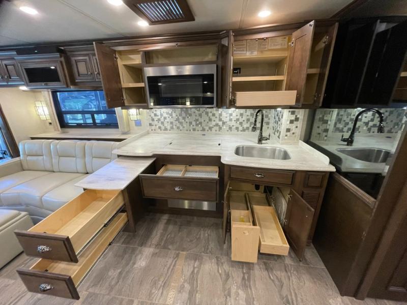 From the moment you step inside, the Dutch Star’s attention to detail is unmistakable. The rich wood cabinetry, LED lighting, and residential-style furnishings create a warm, welcoming atmosphere. The open floor plan ensures comfort whether you’re cooking dinner, watching a movie, or hosting friends. Every corner is optimized for beauty and function—from the plush king bed and premium tile flooring to the expansive storage throughout.