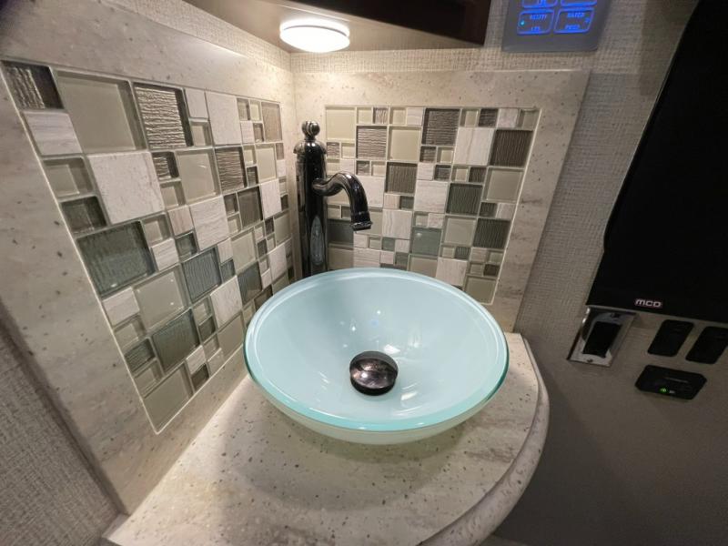 Premium Construction – Handcrafted Bermuda glazed Maple hardwood cabinets, porcelain tile flooring, and solid surface countertops bring home-like comfort on the road.