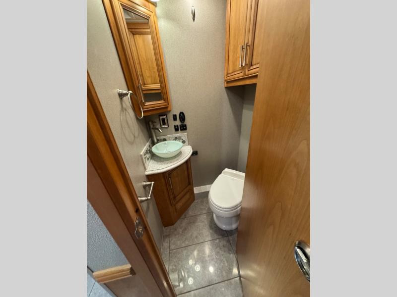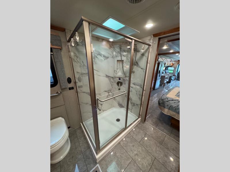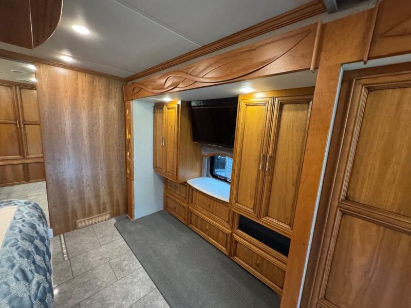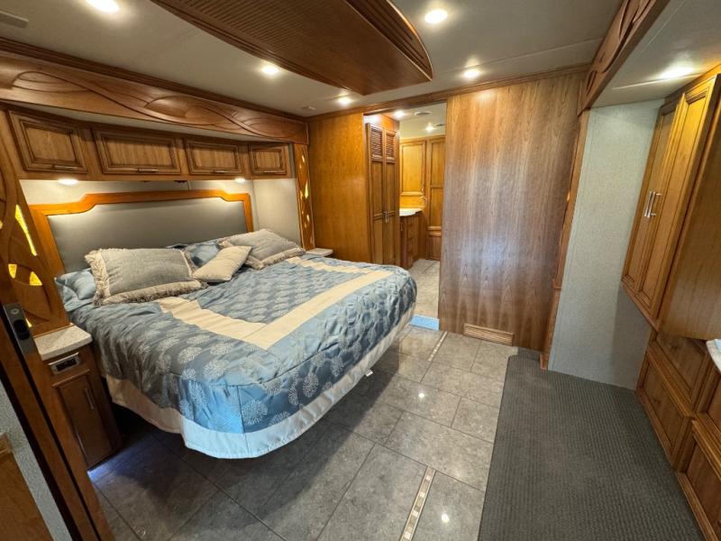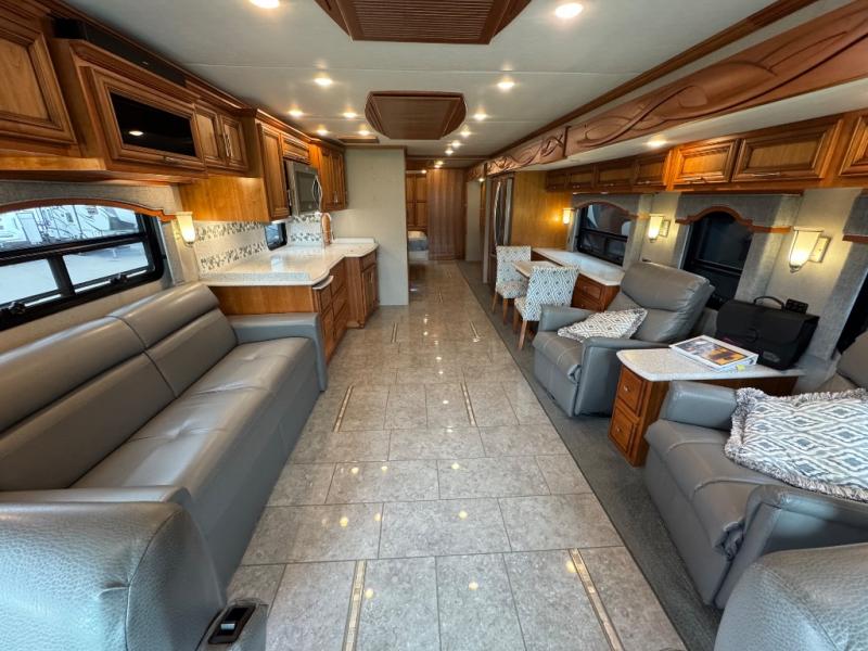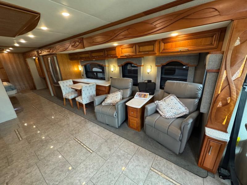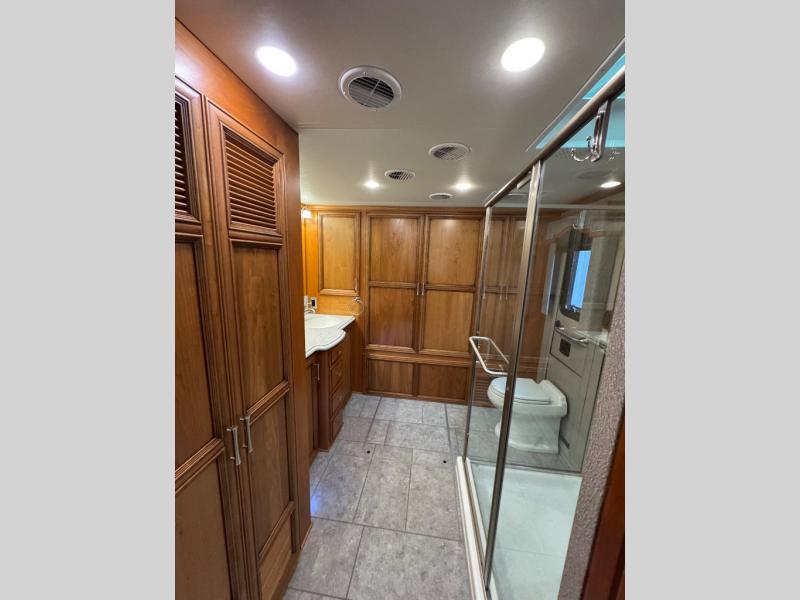 Come enjoy any road trip with this triple slide out Ventana 4369 class A motor home! You will find plenty of room to move around since there are triple slide outs plus there is so much storage with the overhead cabinets. Enjoy your meals at the free-standing table plus just before you come to the bedroom there is a convenient half bathroom. In the bedroom you will find a king bed plus two wardrobes and a dresser for your clothes. The master bathroom has plenty of storage space as well as a 50" x 34" shower and two sinks!