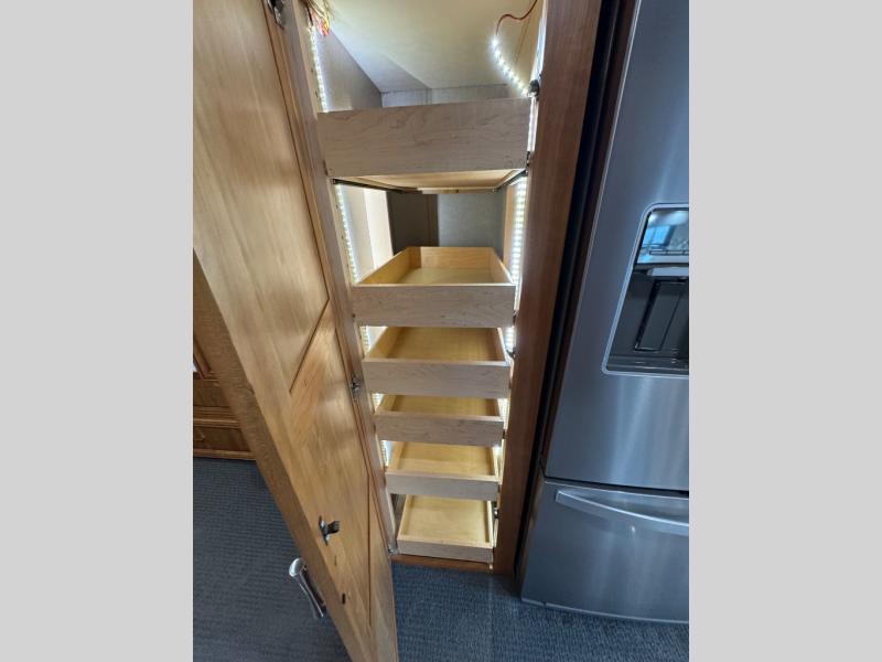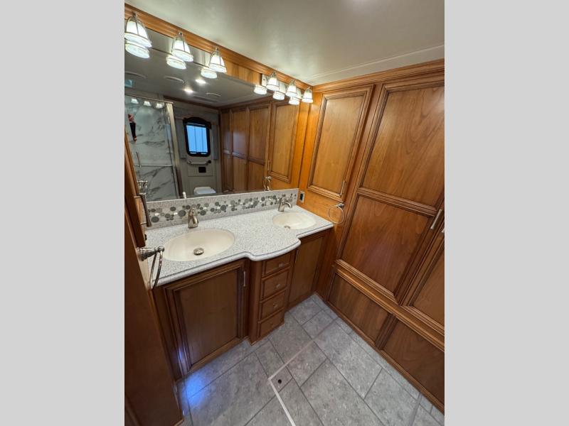 For true comfort and relaxation on any trip whether you are traveling near or far you will want a Newmar Ventana class A diesel motor home. These models are a cut above the rest with frameless double-pane tinted safety glass windows and a skylight above the shower which adds plenty of natural light. You will love the glazed cherry cabinets and the polished solid surface counter tops in the kitchen. When you need to get a little work done then simply set up the passenger seat work station. The polished porcelain tile floor in the kitchen, bathroom, and living room is beautiful, easy to clean, and durable! Get ready for any adventure with a Newmar Ventana!
