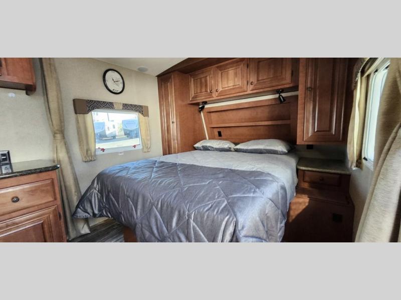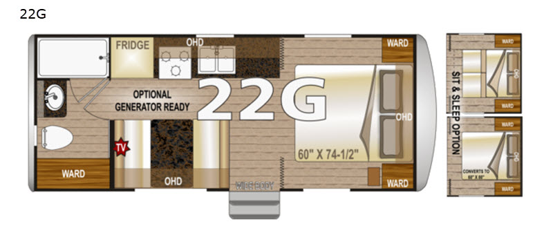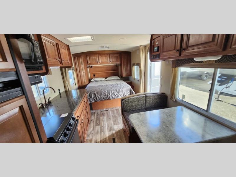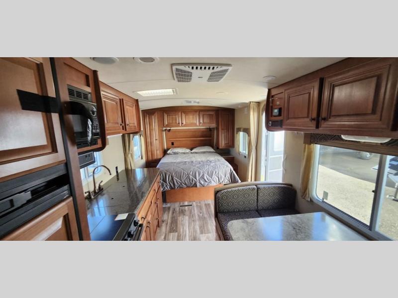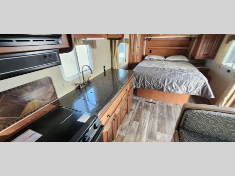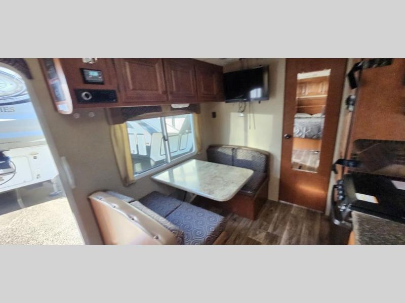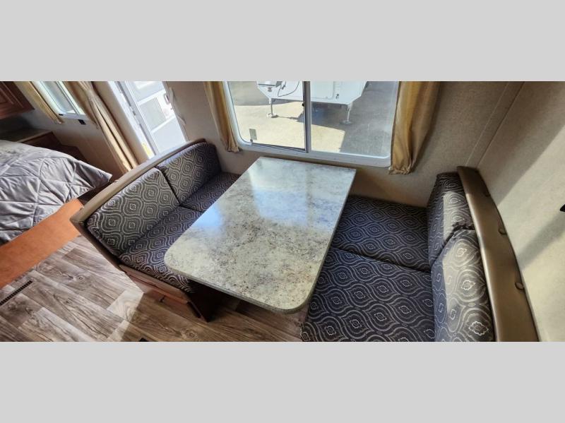 Step into this Arctic Fox Classic 22G wide body travel trailer to find a bedroom at the front with an RV queen bed, overhead cabinets, and wardrobes on either side of the bed to keep your things neat and tidy! You will love the added privacy provided by the rear bath's location too. There is a booth dinette for you to enjoy your meals at and play a game or two at too. If you need more seating area during the day but still have a bed to sleep on at night then you can choose to add the sit and sleep option to accomplish both!