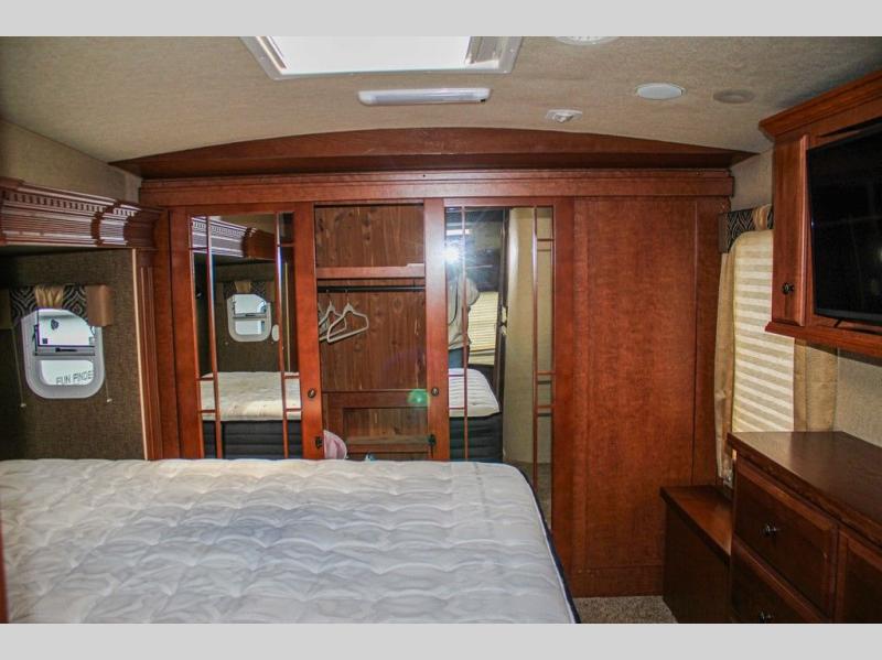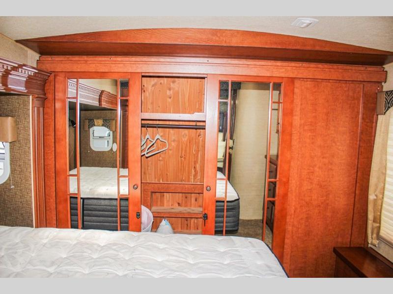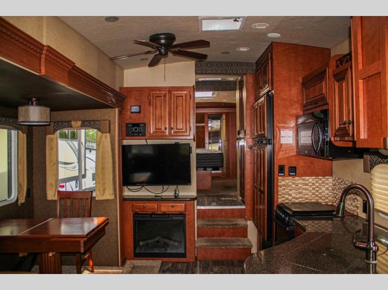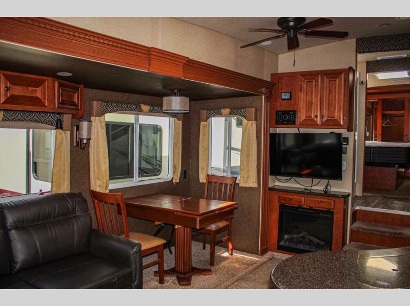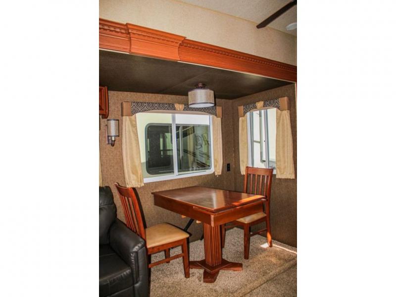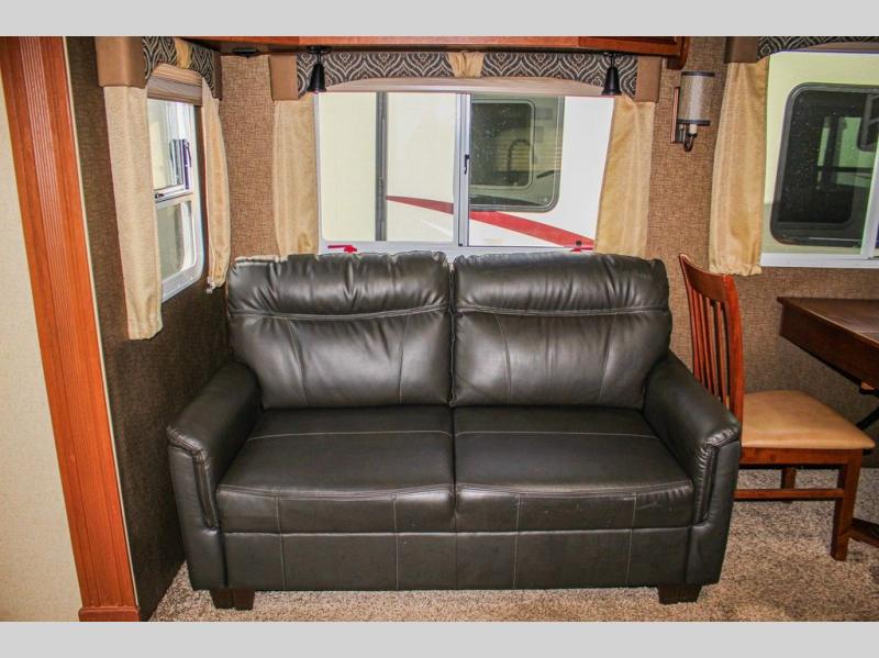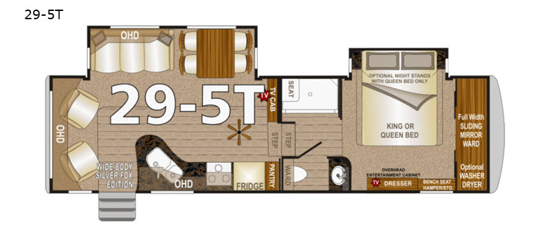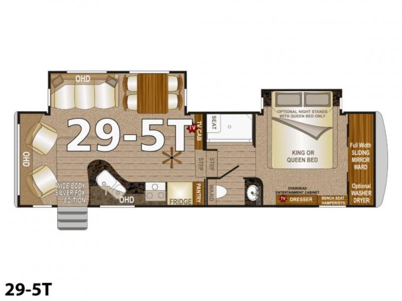 This Arctic Silver Fox Edition 29-5T wide body fifth wheel by Northwood has two slides, a rear living area, and plenty of room to entertain a few guest while you are away from home! You're going to love camping in this travel trailer with features like the 40" LED smart TV, the AM/FM/CD/DVD player with Bluetooth, and the optional fireplace. Plus there is a walk-through bathroom and a front private bedroom for you to retreat to for an afternoon nap on the queen bed or switch it out for the optional king bed. The full width sliding mirror wardrobe is even prepped for you to add the optional washer/dryer so you can stay on top of your laundry!