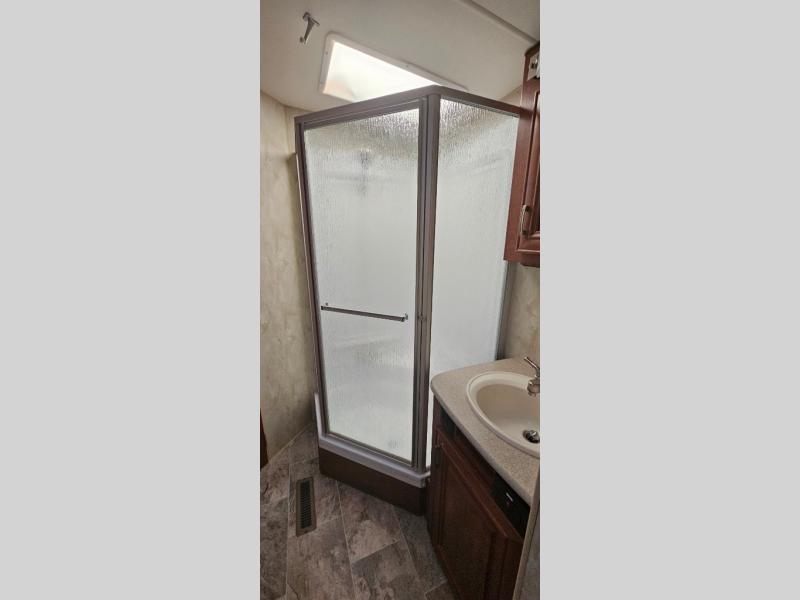 In any Northwood Fox Mountain, you will find a fifth wheel that is built to withstand off-road use without leaving behind any at home comforts. From the thick-wall aluminum frame construction with fully welded joints and the all-condition foam block insulation with a R-18 ceiling and heated holding tanks plus dump valves to the beautiful solid surface countertops. You will also love interior features like the cathedral arched ceiling, the contemporary styling, the stainless steel appliances, and the AM/FM/CD/DVD player with Bluetooth connection, plus a 32" LED TV. Along the exterior, you will enjoy convenient features such as the exterior shower, the LED lighting, 20 watt solar panel, and the 20k BTU auto ignition furnace with a digital thermostat. Northwood has made it their business to bring you a relaxing, comfortable fifth wheel that is not only beautiful on the outside but quality built for years of enjoyment all year long. So, come choose the Fox Mountain that best suits you!