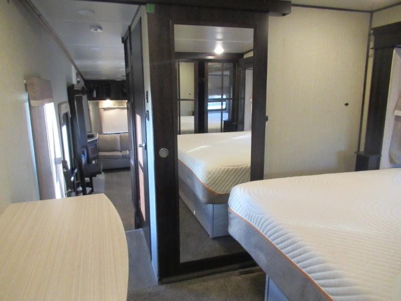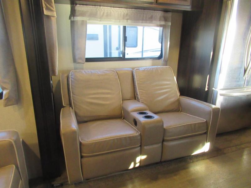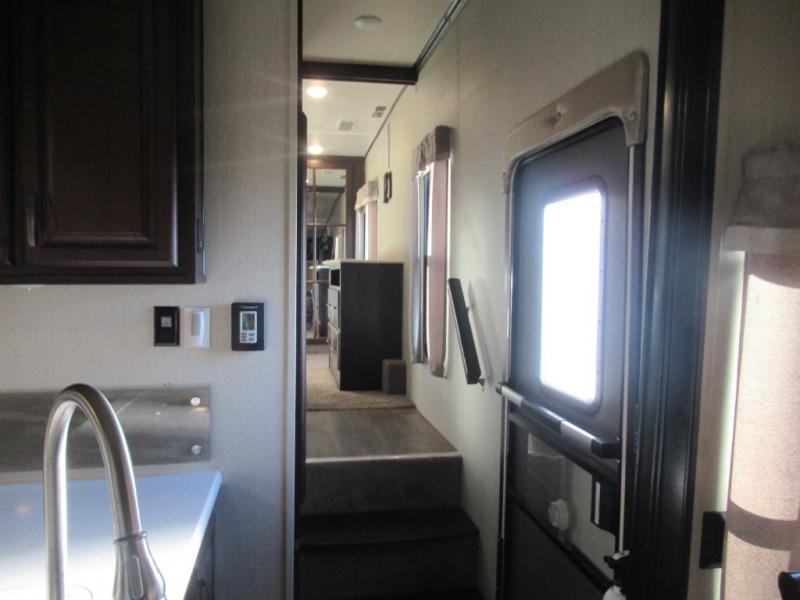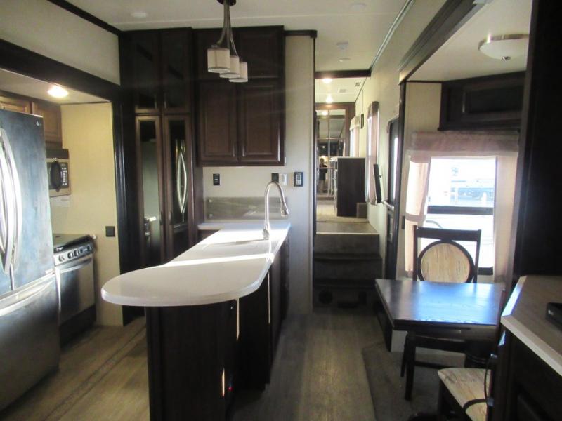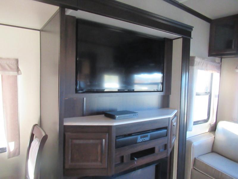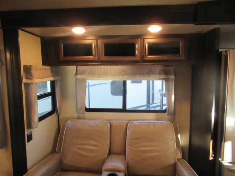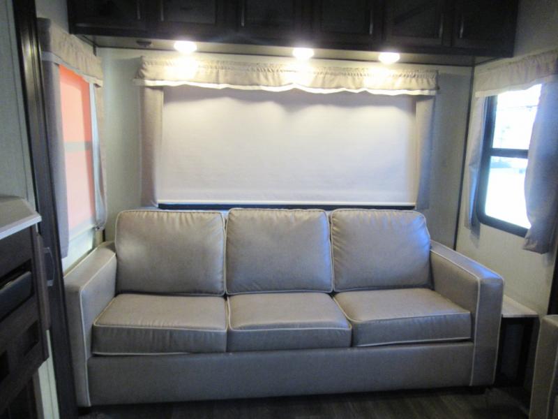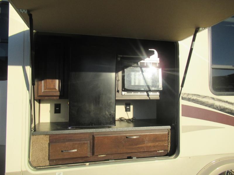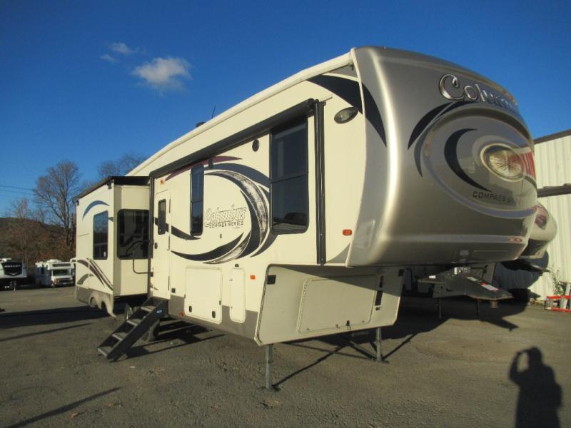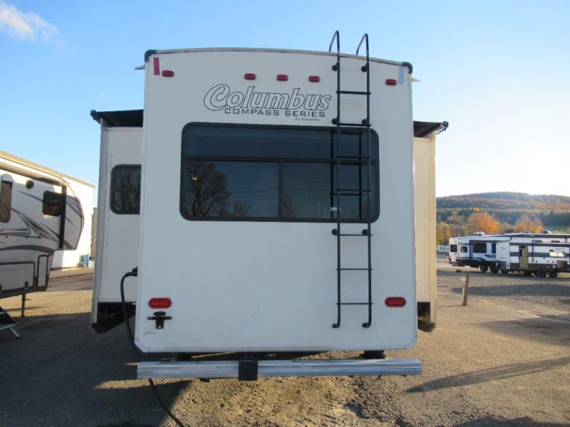 Luxury and convenience is found in every detail in this Columbus Compass 298RLC fifth wheel. From the front master bedroom with a pillowtop mattress and plenty of storage to the combined living and kitchen area with dual slide outs. You can entertain other campers and invite overnight guests to stay the night on the furniture. Your friends will enjoy using your walk-in shower with seat, and relaxing on the theatre seating. When you want to carry the party outside, the slide out exterior kitchen comes in handy for cooking meals outdoors. What are you waiting for, choose this model today!