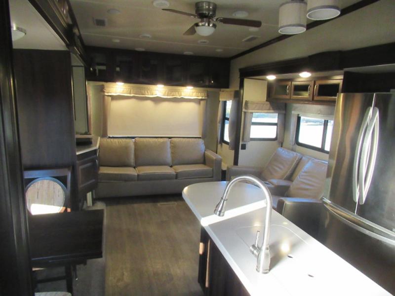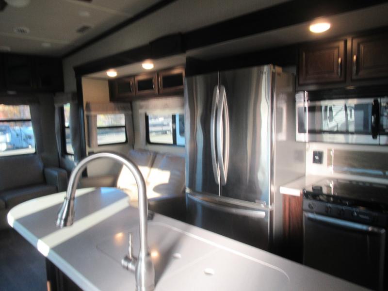With any Columbus Compass fifth wheel by Palomino you can enjoy the finer things while exploring the countryside. Comfortable towing is provided by the E-Z Flex Dexter axles and E-Z Lube axles with Nev-R-Adjust brakes. You will appreciate the large double bowl undermount sink in the kitchen for easy clean up, the residential microwave for reheating leftovers, and the many upgraded features you will find in each model. Come see why owning a Columbus Compass fifth wheel is the correct choice for you!