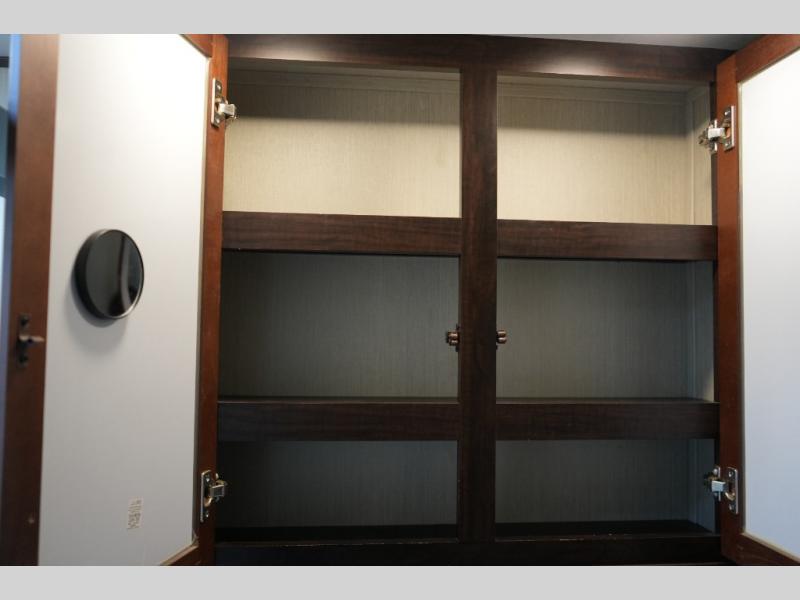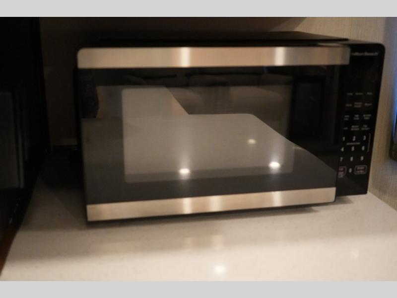 The rear kitchen layout maximizes space and efficiency, making meal preparation simple whether you’re cooking a full meal or a quick breakfast. Enjoy modern conveniences like a residential convection microwave oven, ample cabinetry, and generous counter space.