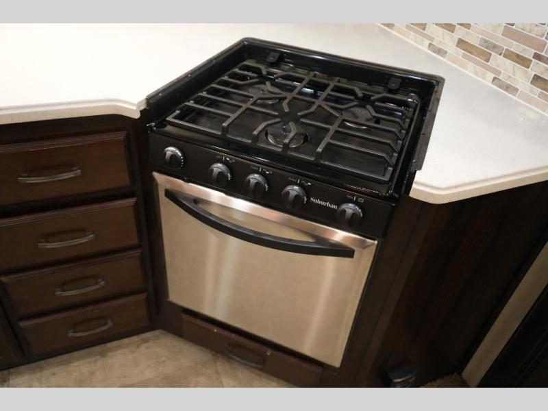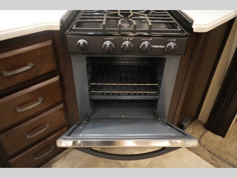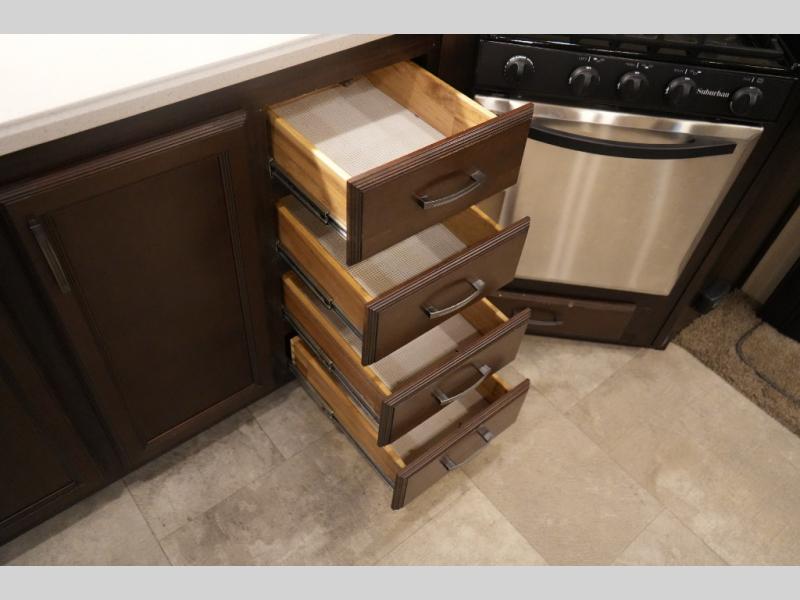 Rear Kitchen with dual slide-outs for exceptional counter space and storage