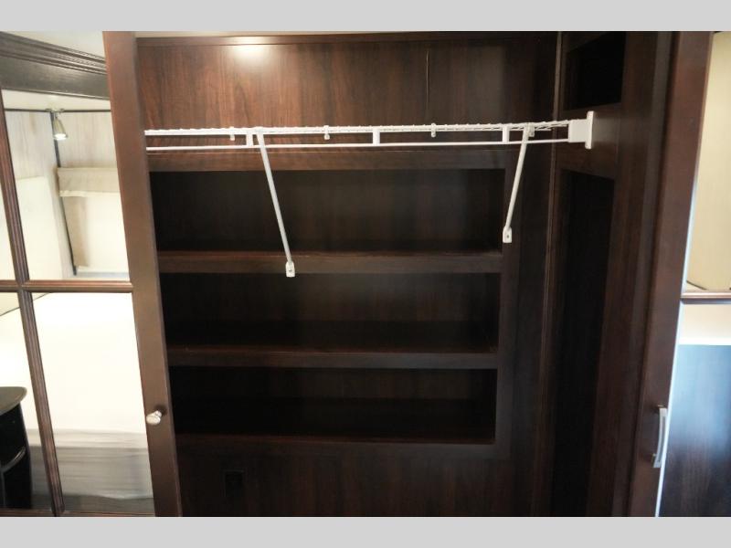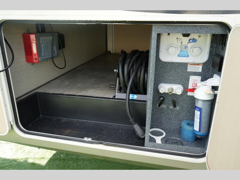 Travel confidently with features designed for smooth towing and durability, including E-Z Flex Dexter axles, E-Z Lube axles, and Nev-R-Adjust brakes. A convenient charging station keeps your electronics powered throughout your journey.