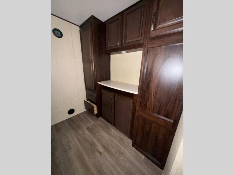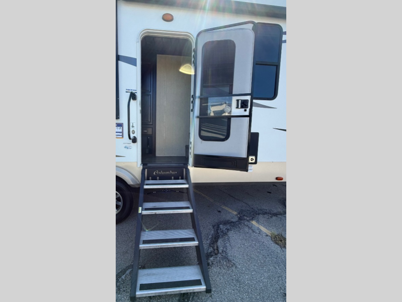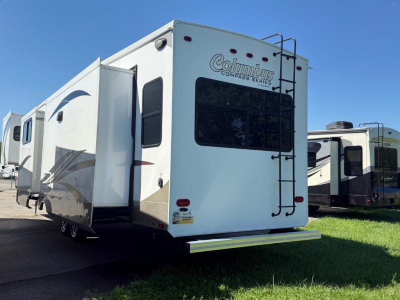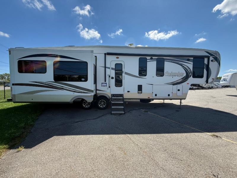 With any Columbus fifth wheel by Palomino you can enjoy the finer things while exploring the countryside. Comfortable towing is provided by the E-Z Flex Dexter axles and E-Z Lube axles with Nev-R-Adjust brakes. You will appreciate the cell phone/iPad charging station to keep the electronics charged the whole trip, the residential convection oven microwave for baking and reheating leftovers, and the many upgraded features you will find in each model. Come see why owning a Columbus fifth wheel is the correct choice for you!