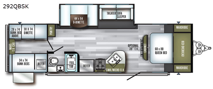 With its single slide layout, this 292QBSK is a practical choice for those who want bunkhouse utility without overextending. A good base for anyone who wants to update, repair, or camp affordably.