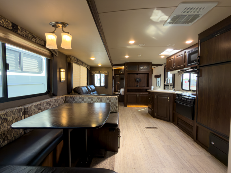 - Towing & Dimensions (Estimated): ~32–33 ft length, hitch ~600–800 lb, dry weight ~5,500–6,500 lb