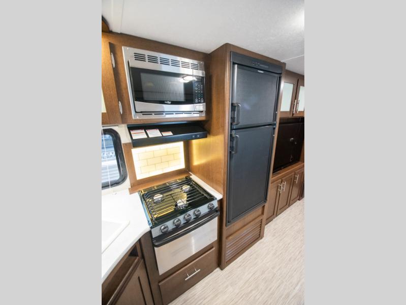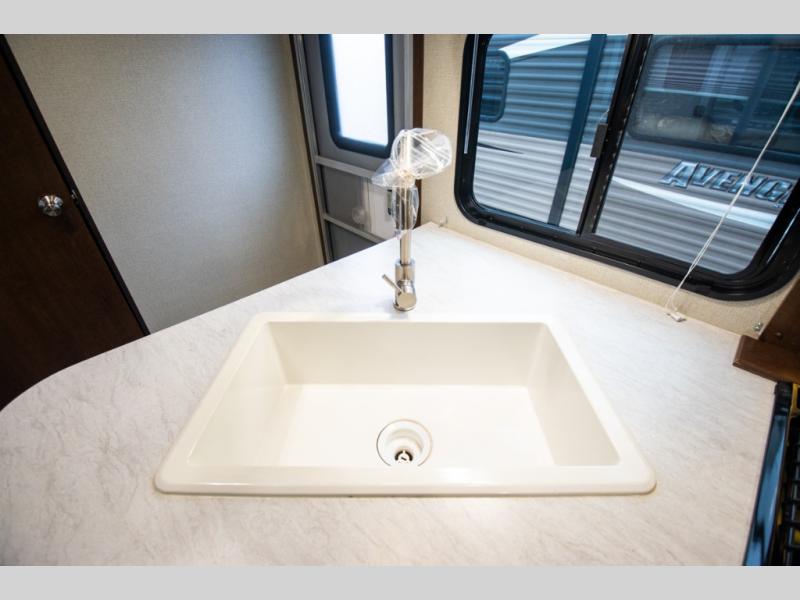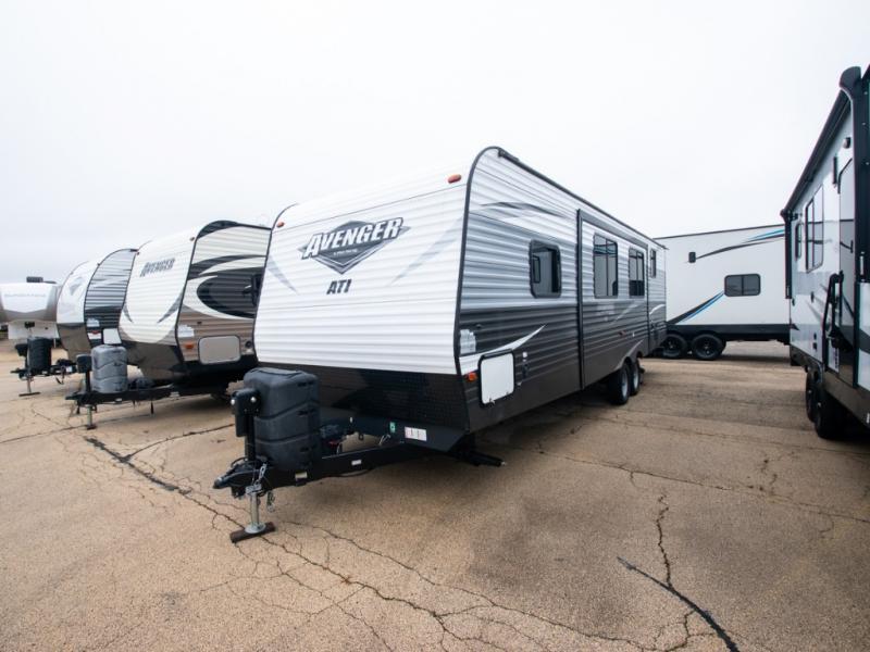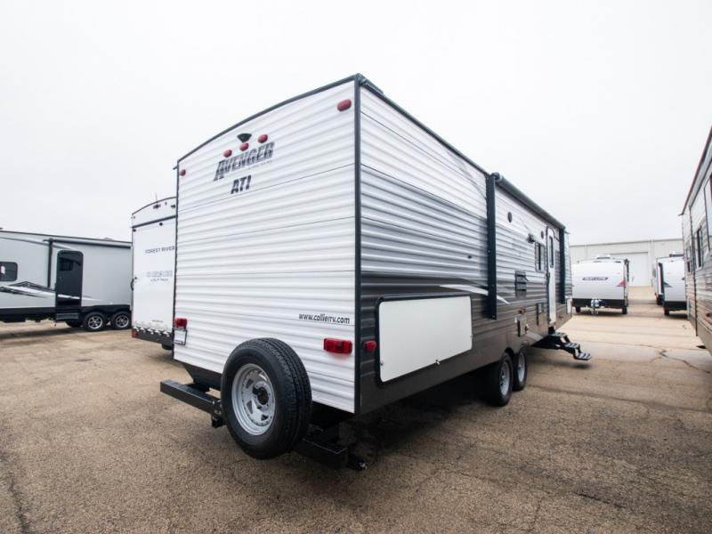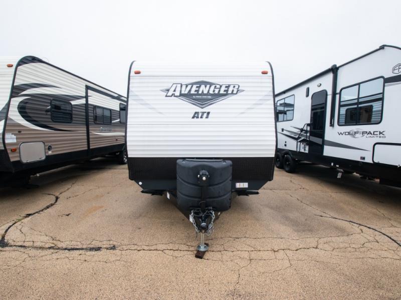 With any Avenger ATI you will feel secure knowing the travel trailer is made with exclusive EVERLAST construction. The Dexter axles provide safety and peace-of-mind while traveling to your favorite locations. Once you are set up you will appreciate the exterior shower providing an extra place to clean off, the radius entrance door with a window, and the LED lit power awning while relaxing outside with family and friends. The mandatory Advantage package provides additional features that you will find useful such as a restaurant style kitchen faucet, LED interior lighting, and a large double door refrigerator. It's time to take your next journey in an Avenger ATI travel trailer by Prime Time RV!