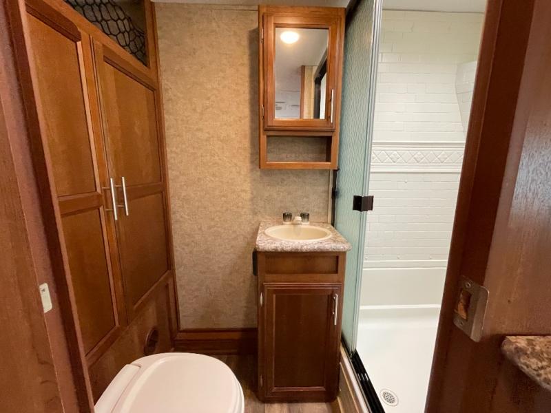 The private rear bath includes a shower, sink with medicine cabinet, toilet, and a large closet.