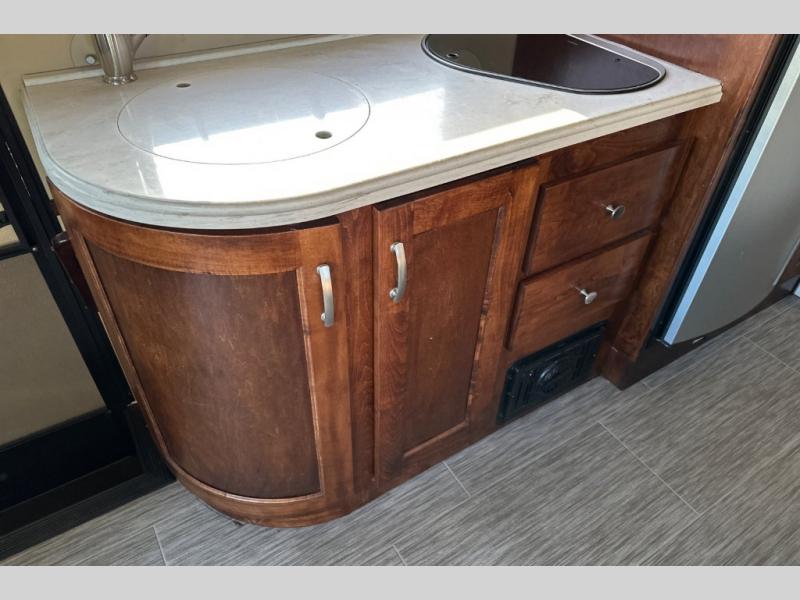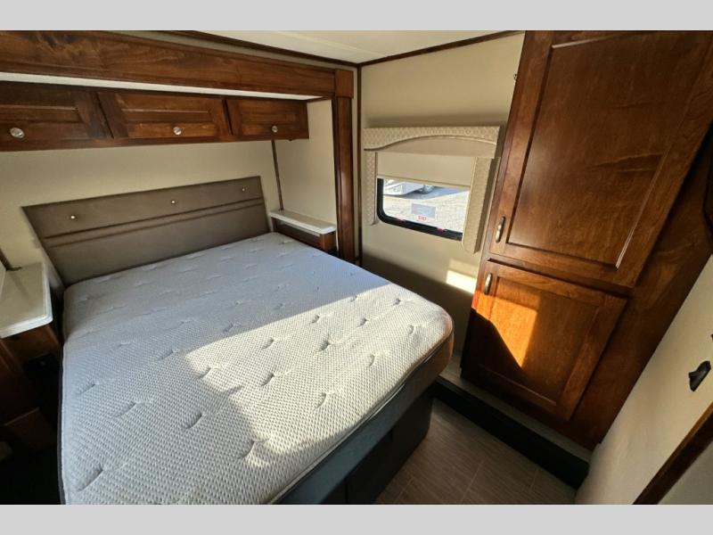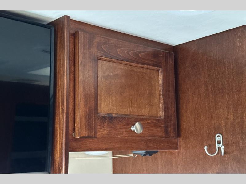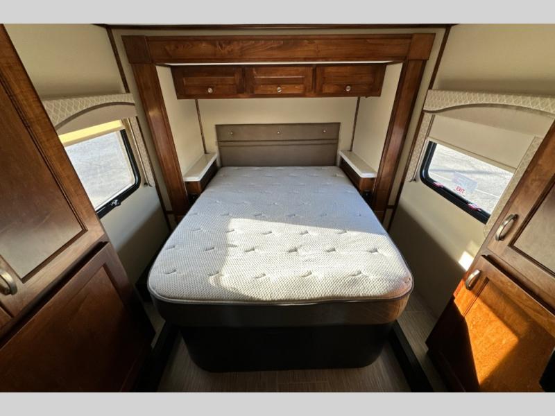 In the very rear a complete bedroom with slide out rear wall bed including overhead storage is where you will enjoy resting up for a new day of adventure. There are storage cabinets on either side of the room for your things, plus so much more!