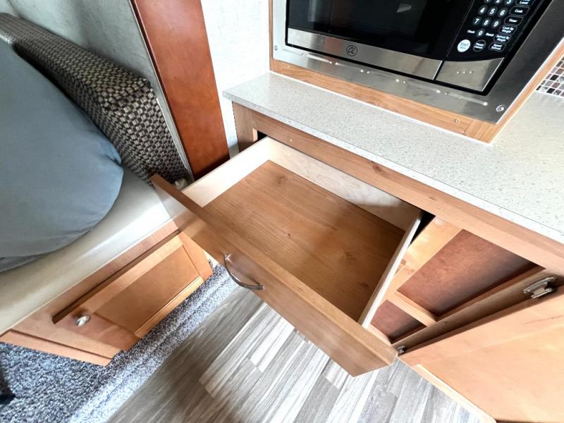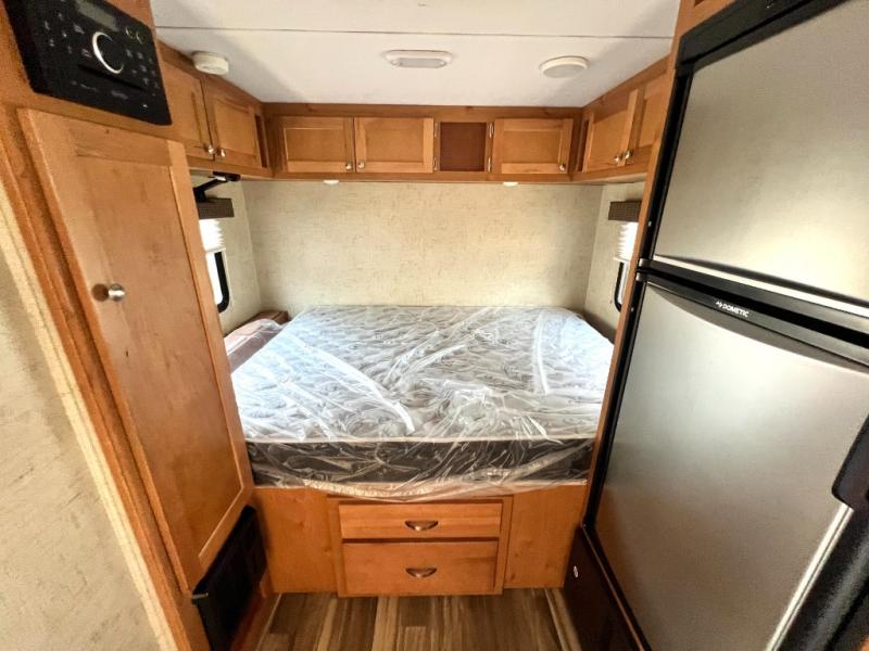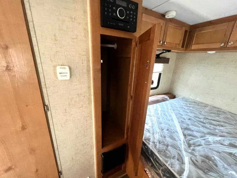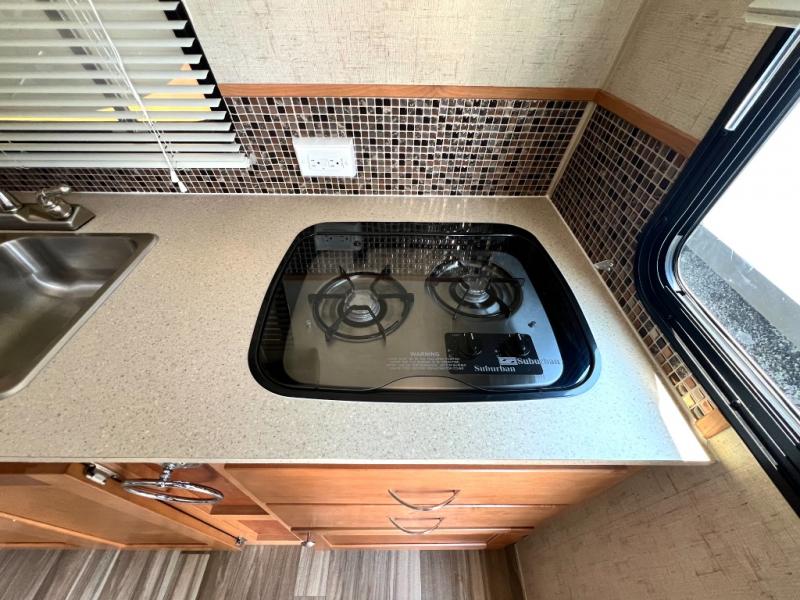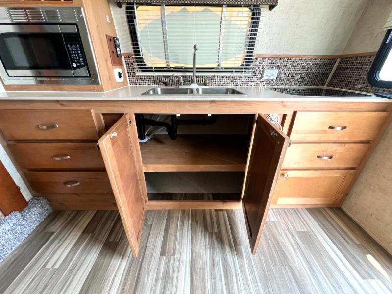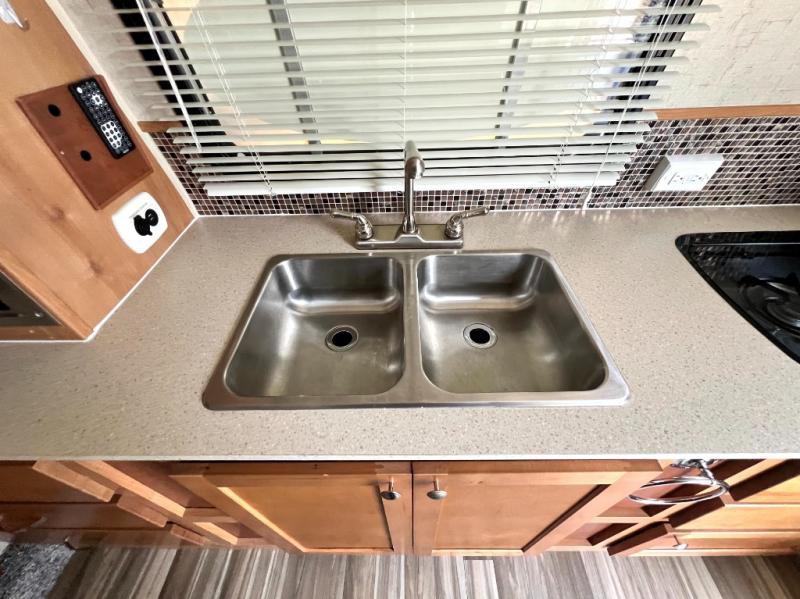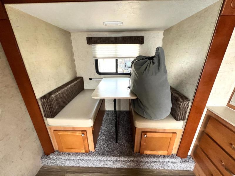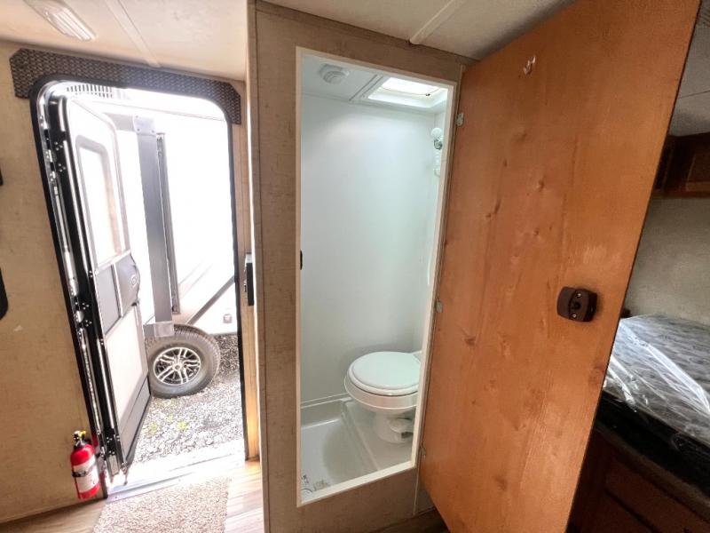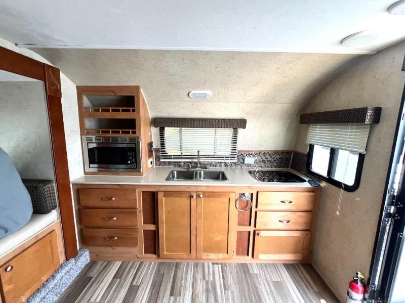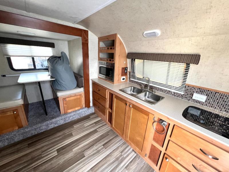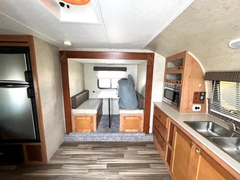 Hook-up and head out to your favorite destinations for the weekend and just enjoy! This lightweight camper is easy to tow and offers all of the basics. You will love the front kitchenette that provides you with simple camp appliances so you can forgo the outdoor fire except for s'mores! A wet bath allows you the ability to skip the campground bathroom altogether, and you will appreciate the queen bed for a great night's rest. A single slide out dinette is perfect for indoor meals, or additional sleeping space for your little ones!