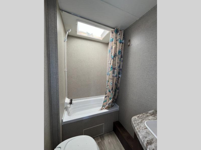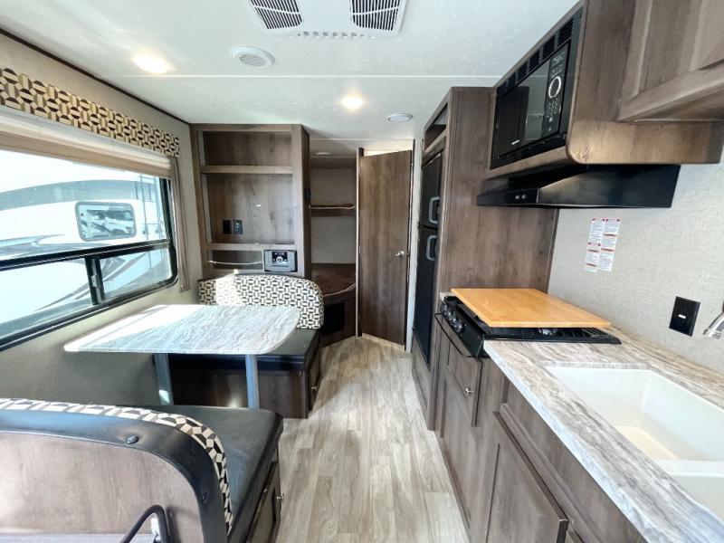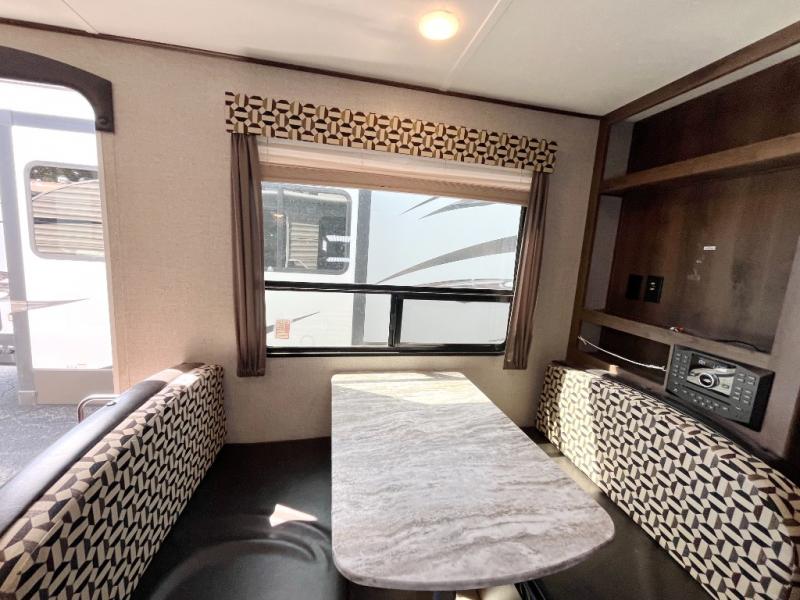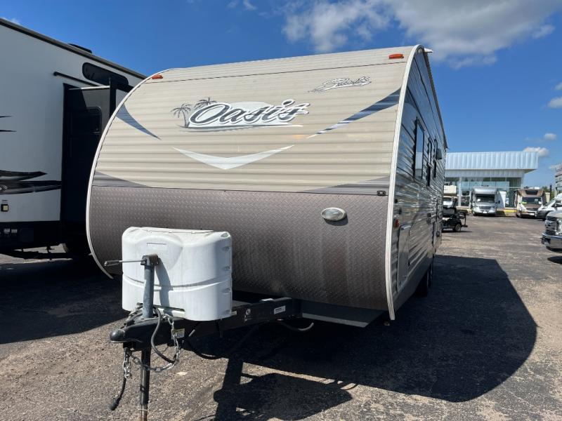 Enjoy a little paradise as you travel with this Oasis travel trailer tagging along behind you. This unit has the ability to sleep eight people with the included bunk beds in back and the queen-size bed in the front, private bedroom, and your family will thoroughly enjoy having a full bath with a 40" tub/shower, skylight, toilet, and sink in this unit. Each morning as you begin your day, you will love to wake up to the natural light that pours in through the large windows.