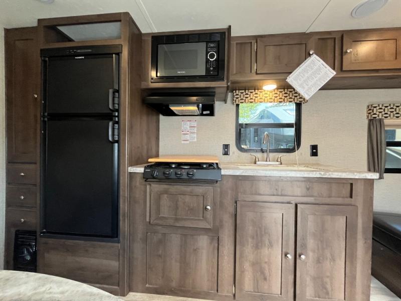With any Shasta Oasis travel trailer you can expect quality, comfort, and value in every model. Inside of each Oasis you will enjoy LED lighting, Carefree flooring that is super easy to clean, and handcrafted pocket-bored and screwed cabinetry to ensure years of use. There is lots of storage space throughout, as well as comfortable furnishings, and you can easily cook your favorite camp-out meals with the handy 3-burner cooktop stove and 6 cubic foot refrigerator. When it comes to keeping everyone clean and smelling fresh, the 6 gallon gas DSI water heater allows you to take long hot showers, without any problem at all!
