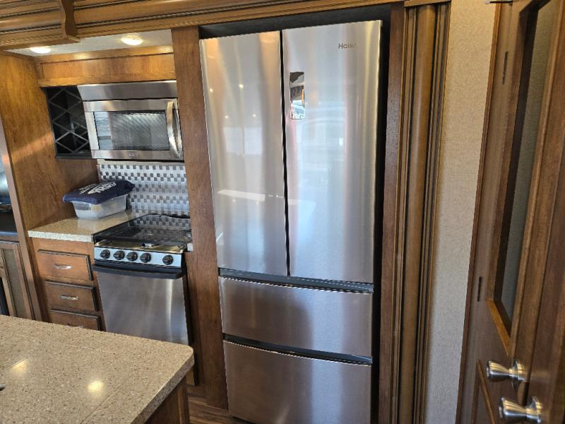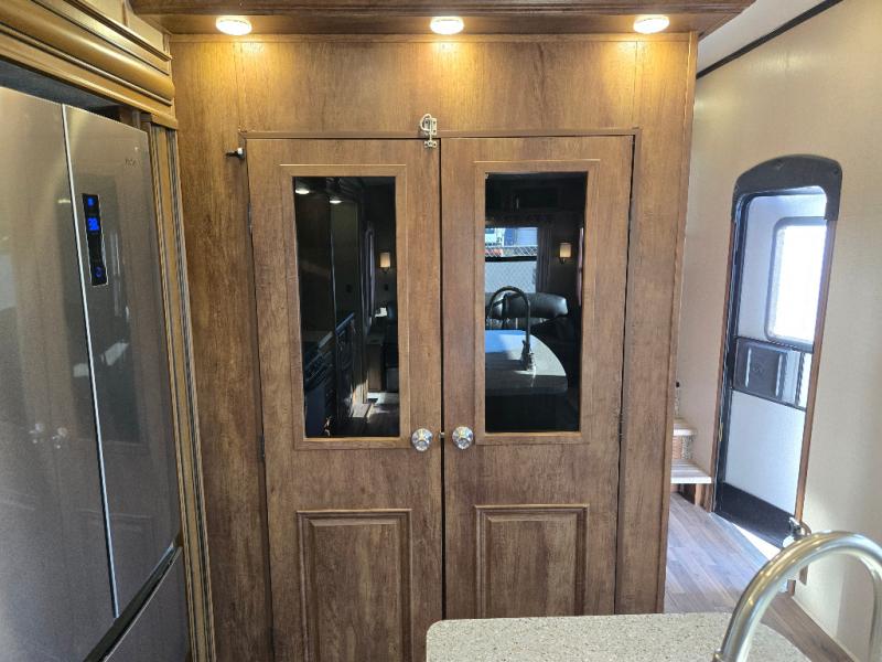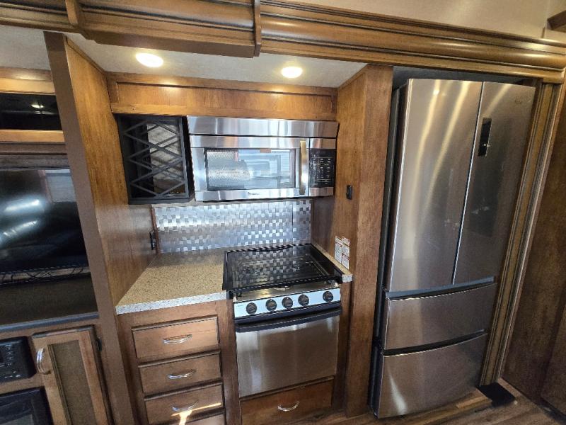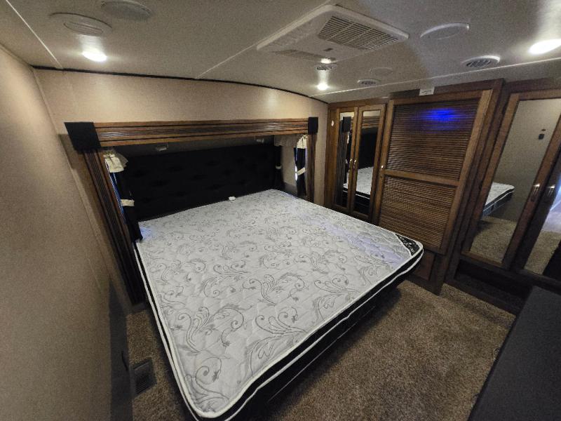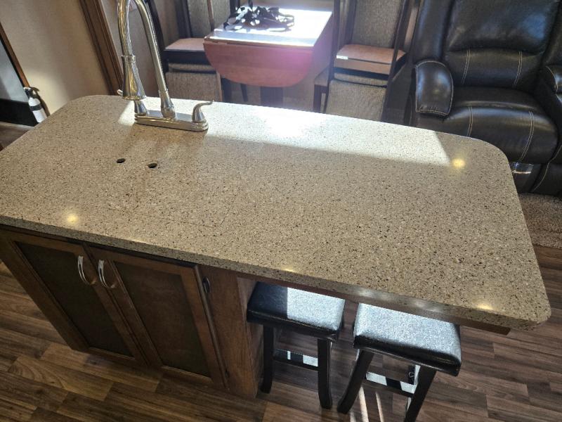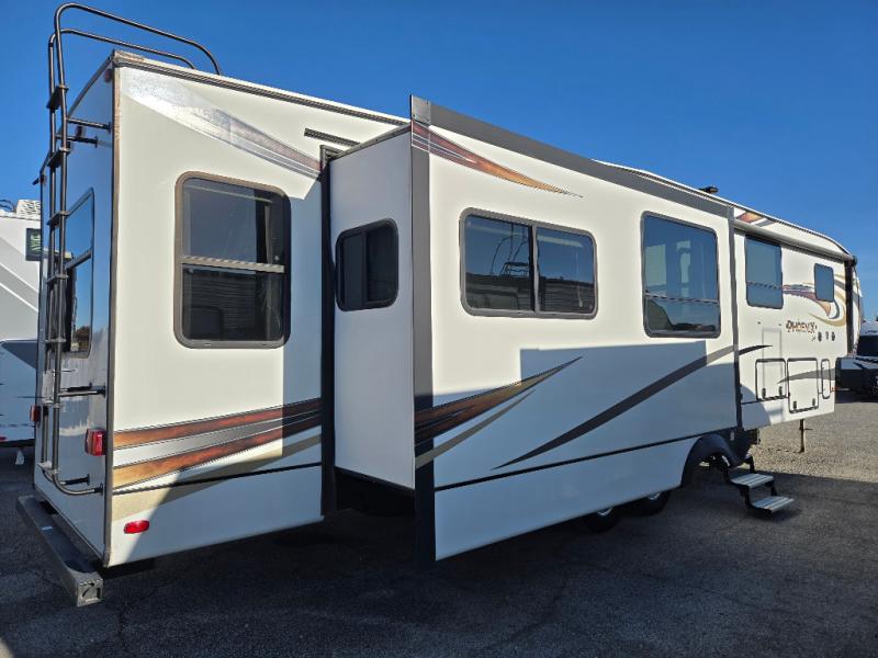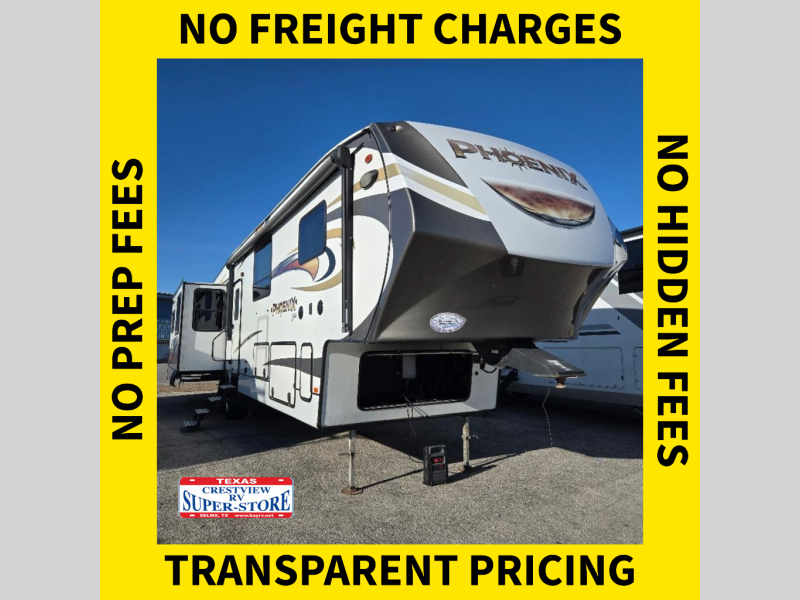 This Phoenix fifth wheel is completely extravagant! It has plenty of room to house those traveling along with you because it contains a private bedroom in the front, as well as a private den in the middle of the unit that includes a tri-fold sofa and removable table with a loft above. One more tri-fold sofa in the living room completes the ensemble for eight guests to sleep comfortably each night. This model also allows you the opportunity to host guests both indoors and outdoors with its outdoor entertainment center and outdoor kitchen underneath the 20' electric awning with LED lights.