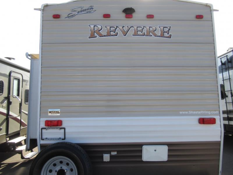 Shasta gives everyone the opportunity to experience affordable luxury and everlasting style with this Revere travel trailer. Whether you enjoy cooking on a stainless steel 3-burner cooktop, gazing at the stars underneath an electric awning with LED lights, or rinsing off in an outdoor shower after a long day of exploring, this travel trailer allows you to do all of those activities and so much more. This Revere comes equipped with exterior speakers so that you can continue the party even after you've exited the trailer.