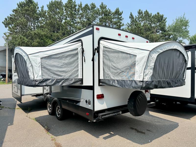 You will enjoy your camping adventure in any one of Starcraft's flexible line of expandables called the Launch Outfitter. Many can even be towed by today's smaller vehicles! These units feature a 6 gallon water heater, solar prep, warm Sugar Maple wood cabinetry, plus valances and pleated shades too. They are constructed with a Magnum roof system, 5/8" main floor decking, and backed by a limited 3-year structural warranty. These features will not only let you spend life on the road with ease, but will have you feeling like a bit of home is with you as well.