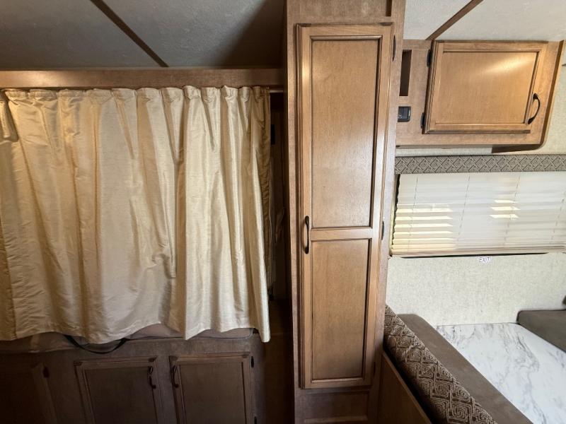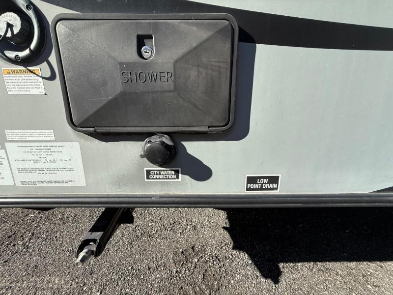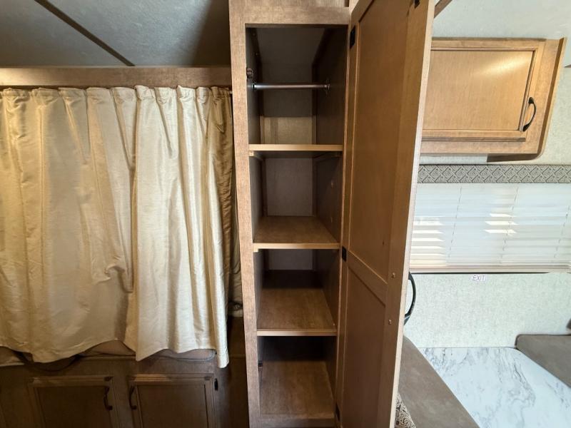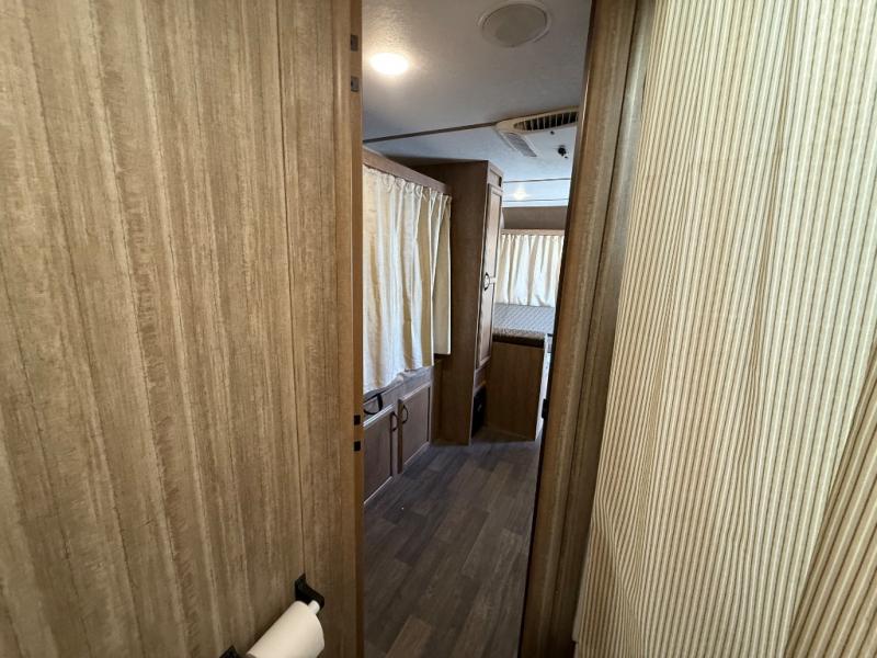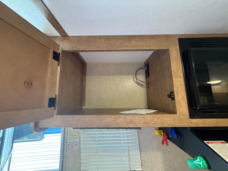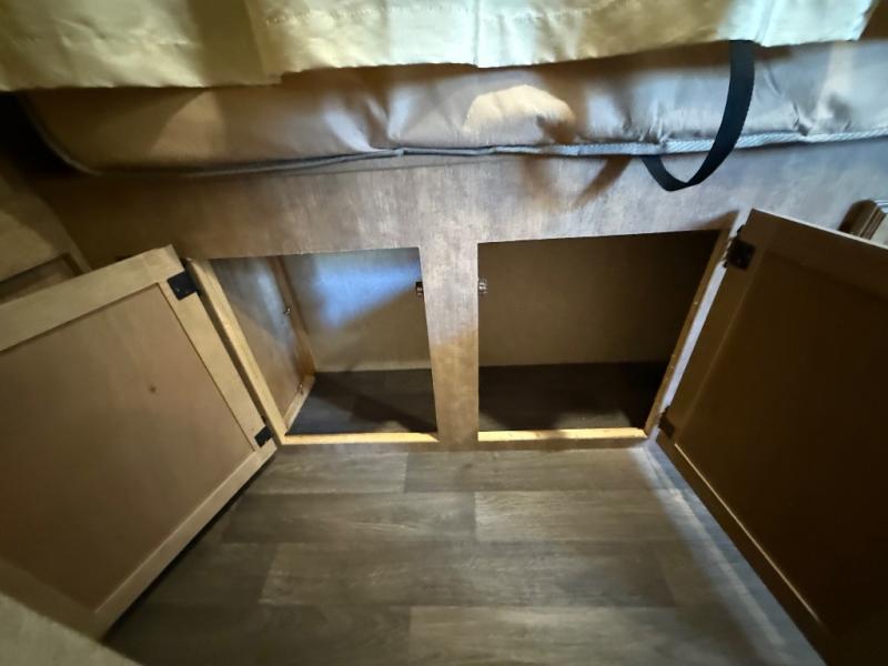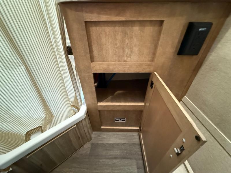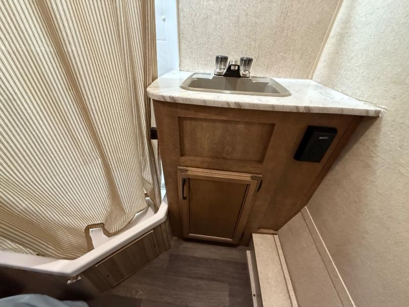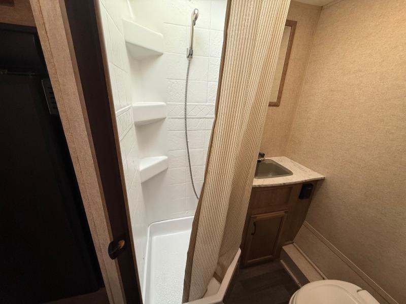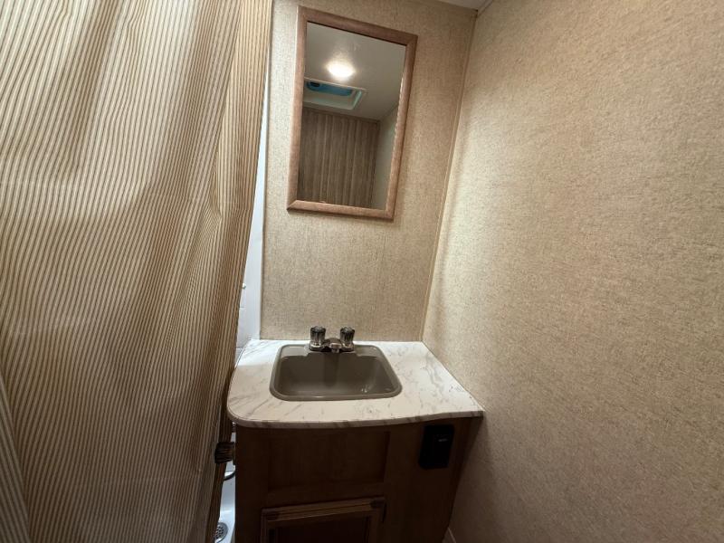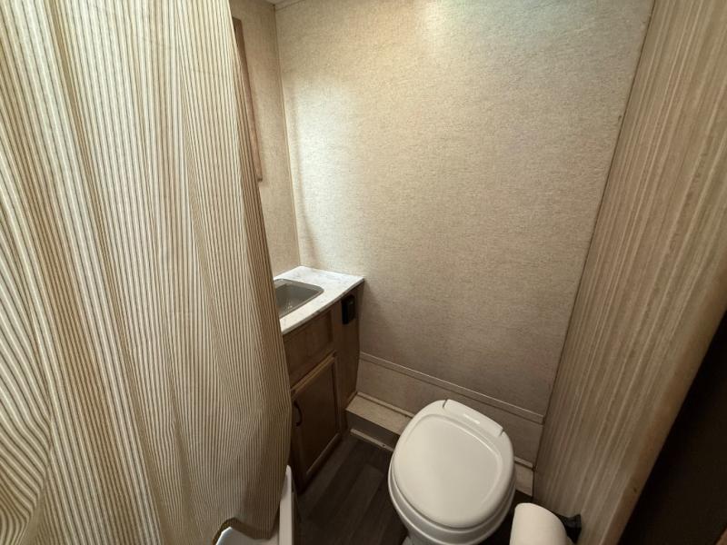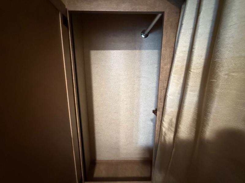 In the rear left corner you have the convenience of your own complete bath including a radius shower, toilet, and sink. Just outside the bathroom along the rear wall between the bathroom and side bed there is a wardrobe for storage, plus so much more!