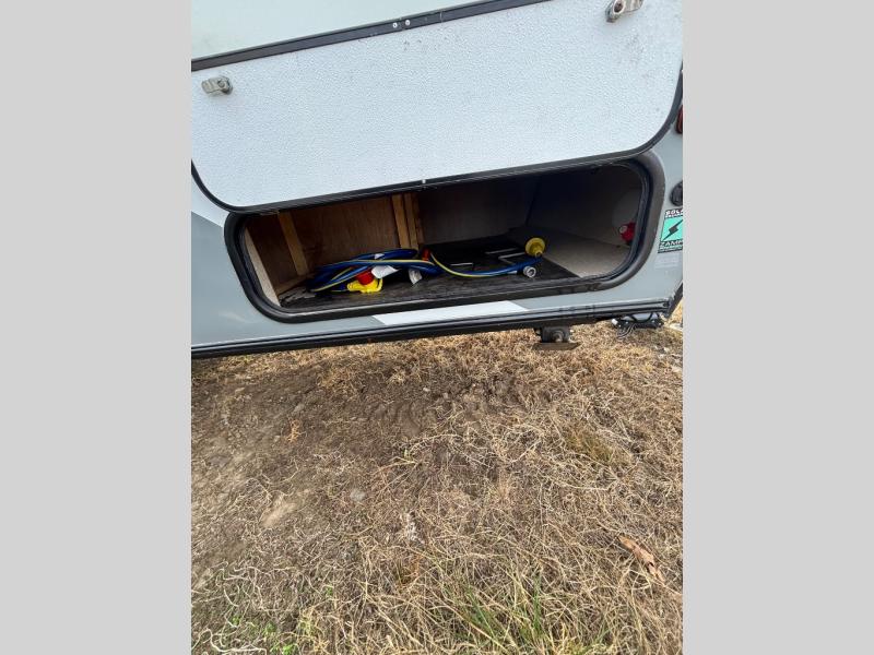 Outside there are a few storage areas for your outdoor camping gear, a 9' awning, and more!