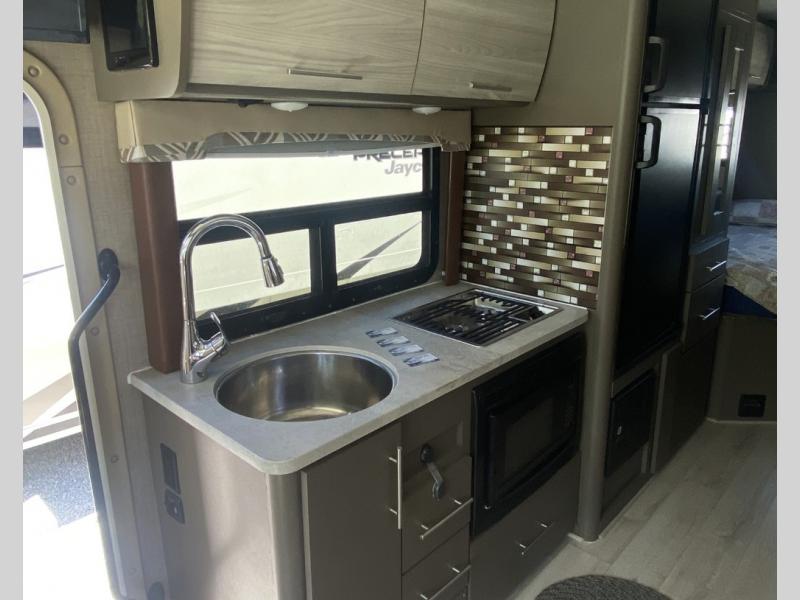 If you want a motorhome that is going to enhance your lifestyle without adding extra burdens, then this Axis Class A gas motorhome is precisely what you need. The two twin-size beds potenially you could change to a queen mattress or a king-size bed giving you the ability to choose how you want your space to function, and the powered drop-down bunk over the cab also allows you to decide when you want to adjust it. You will never have to argue over which movie to watch because with three 32" LED TVs, everyone can tune into their own station, and the removable pedestal table will come in handy to hold your popcorn and other movie-time snacks.