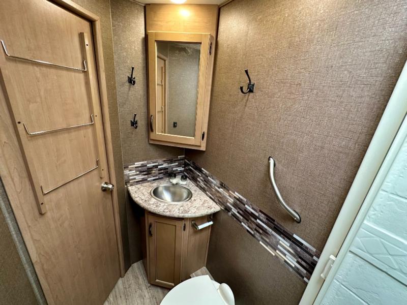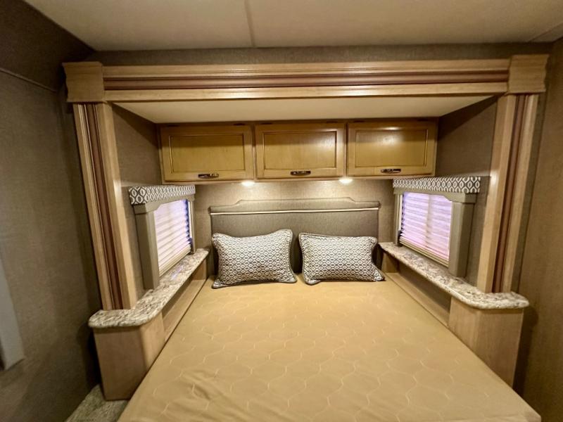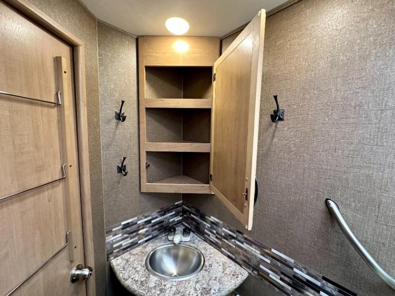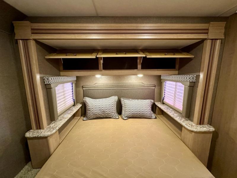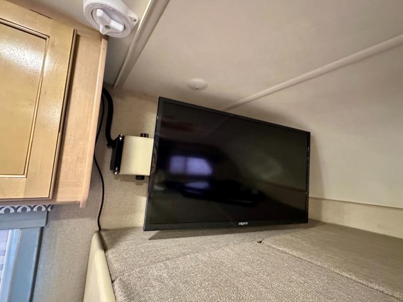 Above the cab, there is a bunk which features 54"x96" of sleeping space, overhead cabinets, and a 40" LED TV with a swivel arm.