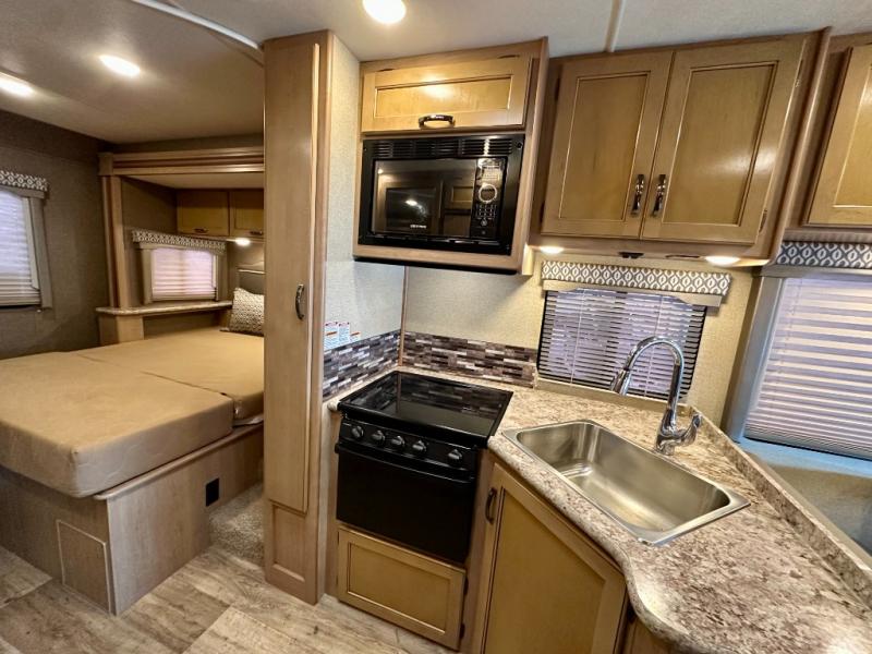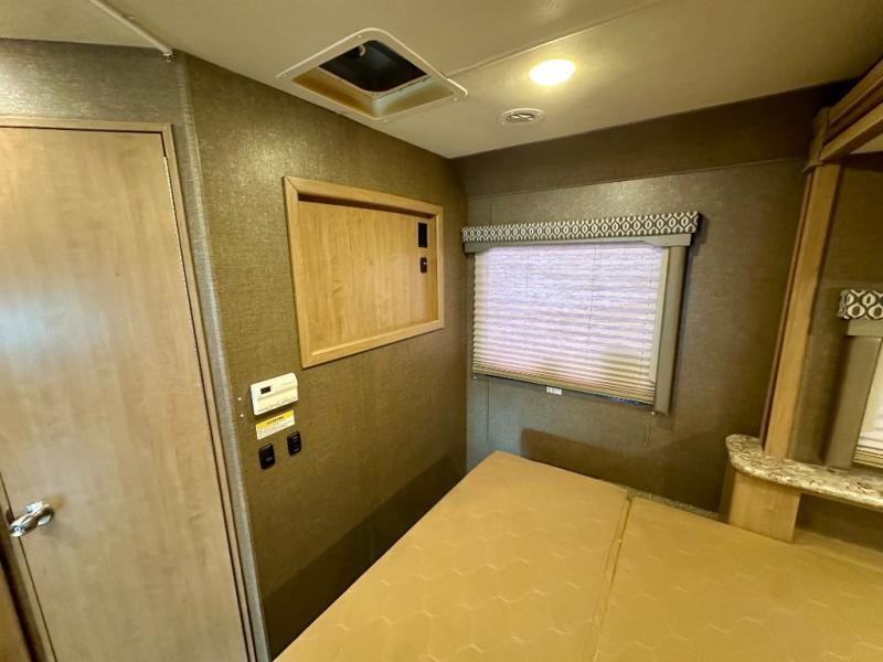 After a day of fun an adventure retreat to the comfort of the rear bedroom. Here you will find a slide out with a queen bed, an overhead cabinet, and nightstands. There is also a privacy curtain which you can easily pull closed at night.