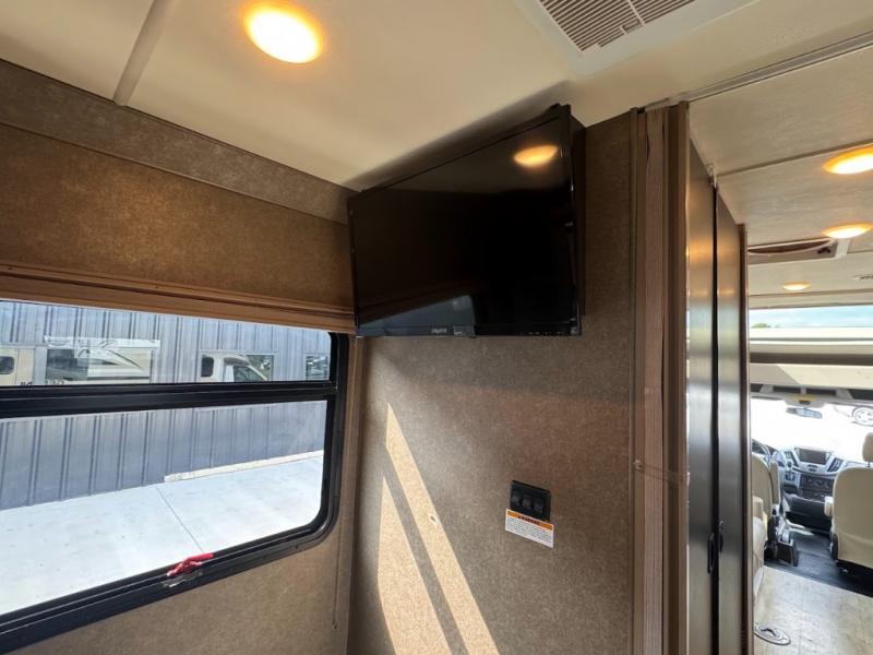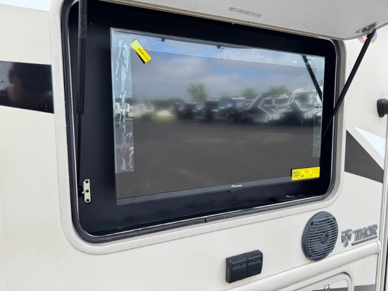 Travel comfortably in this Gemini 23TR class C diesel motor home by Thor Motor Coach. Your scenery can change from day to day but the comforts inside this model will stay the same! You will enjoy the comfortable living space with the 64" sofa bed plus there is a removable pedestal table. Enjoy watching TV at the living room 32" LED TV or in the rear bedroom there is a 32" LED TV. In the rear there is a flip-up queen bed with cushioned seating underneath. In the cab you will find a built-in skylight which allows for so much natural lighting throughout. In the evening you will want to grab your camp chair, a snack, and watch a little TV at the optional exterior 32" LED TV and more!