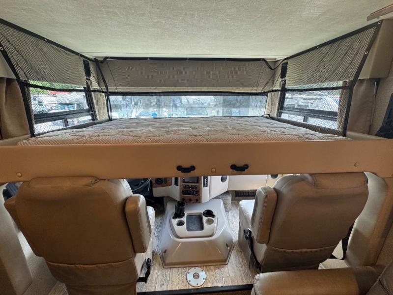You will find so much to love about the Hurricane models whether you are out for a long road trip across the country or a weekend tailgating party close to home. All Hurricane models feature soft furnishing, solid surface countertops, and new glass inserts in the upper kitchen cabinets. Hand-crafted Maple or Cherry cabinets compliment each of the decor choices offered. No matter which model you select, each features a dinette that seats four comfortably and also converts to a bed for two. You will also find added sleeping in the drop-down cabover bunk that the kids are sure to love. With the front captain's chairs on swivels, you can easily bring them into a conversation area in the living space once parked, and there is a computer workstation at the passenger side front seat for those who need to do a bit of work while you travel, or just enjoy surfing the internet. Each Hurricane model also features a pantry and spice rack, plus a beautiful glass tile backsplash. On the outside, enjoy plenty of storage for all of your extra camping gear and an outdoor shower, plus a 32" LED TV and lighted awning to light up the night for entertainment as well as daytime cover from the sun. Make a Hurricane model your new home-away-from-home today!