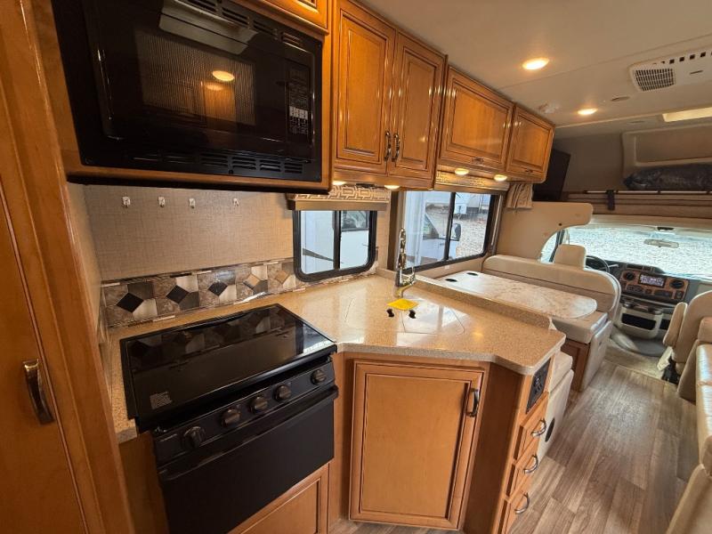 Park this Class C motorhome in the camping spot you have picked out for next weekend! For a rainy day, grab a blanket and curl up on the sofa or the dinette and put a movie on the 40" LED TV and hunker down. If it is a nice day outside, put up the 18' awning, add a few camp chairs, and enjoy the great outdoors without the sun beating down on you. If you would like some entertainment outside, add the optional 32" LED TV and be able to watch the game while you are on vacation. Mom and dad will love having their own space, just close the privacy curtain and have a good night's rest.