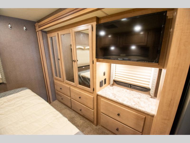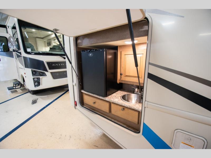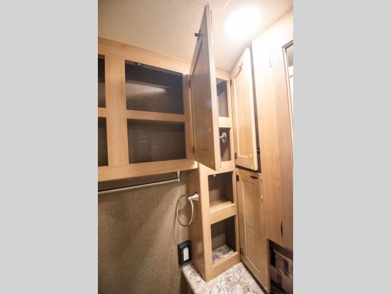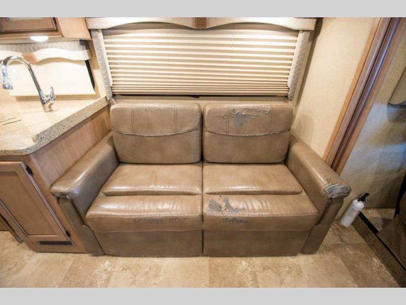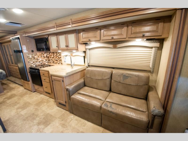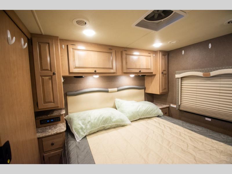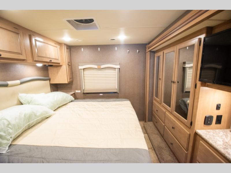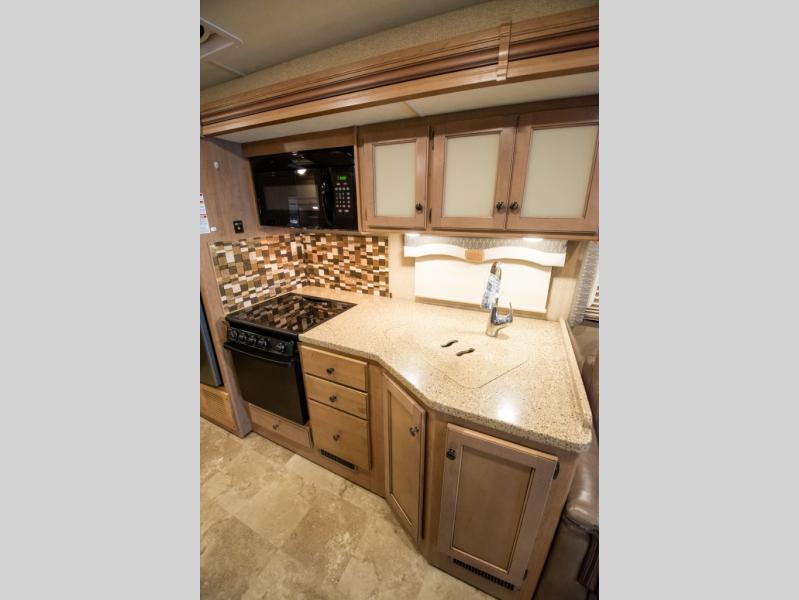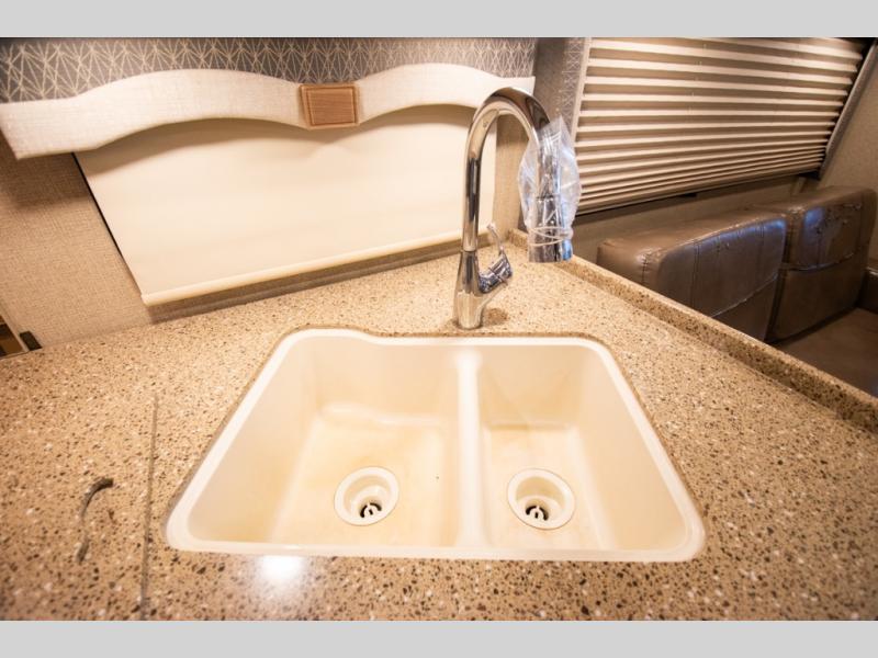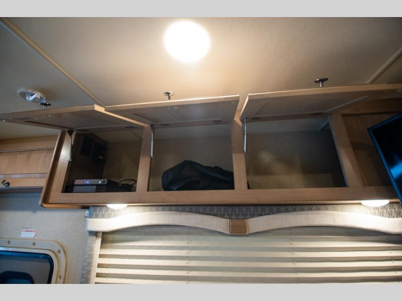 You will find much to love about all Windsport models whether you are out for a long road trip across the country, or a weekend tailgating party close to home. All Windsport models feature Leatherette furniture, solid surface countertops, and raised panel upper cabinet doors with nickel finish hardware and glass inserts on select doors. You will also find added sleeping space in the drop-down cabover bunk that the kids are sure to love. With the swivel and reclining captain's chairs you can easily bring them into a conversation area in the living space once parked, and there is a dash workstation with 110-volt and 12-volt outlets at the passenger side for those who need to do a bit of work while traveling, or for those who just enjoy surfing the internet. On the outside, enjoy Robocast storage compartments, an outdoor shower, plus a 32" LED TV on a manual swivel, and a legless lateral power awning with integrated LED lighting. Make any Windsport class A gas motor home by Thor Motor Coach your new home-away-from-home today!