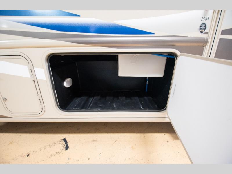 Been daydreaming about traveling the countryside with your spouse? Looking for additional sleeping space on occasion? This Windsport class A gasoline coach will have you sitting by your number one person in comfort and style. This 29M features captain's chairs, a sofa bed, and a Dream Dinette providing enough seating for eight people to visit in the kitchen and living area. You will find six seat belts, and sleeping space for seven. And the king bed in the rear bedroom allows you to sleep in comfort anywhere you decide to stay. The chef will appreciate all the kitchen amenities when making meals, and the full bathroom is centrally located for everyone. If you prefer to watch the television when inside, you will find a 40" and 32" TV, plus a 32" LED TV and exterior kitchen outside. Start traveling the way you like, in comfort and style.