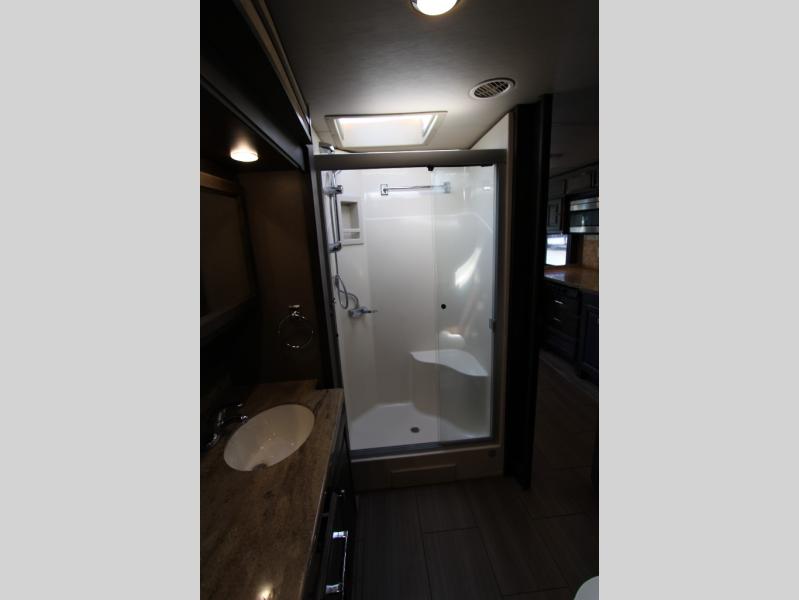 With any Allegro RED class A diesel motorhome you will enjoy luxury, and detail to every feature throughout. You will find the Ultra Leather furniture offers contemporary finishes and comfort, plus the Artisan Woodcraft woodwork from solid unblemished hardwood by Red Bay master craftsmen provide more storage for all your items. The low maintenance of the grid-locked porcelain tile floors offers durability and elegance you desire. You will see the Dry-Step allows for safe entry into the motorhome, the Onan generator provides a back-up plan, the Extraordinaire System is exclusive to Tiffin allowing quiet climate control technology, and the energy efficient lighting will have you wanting any Allegro Red model today!