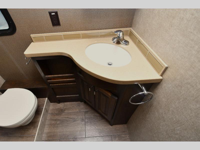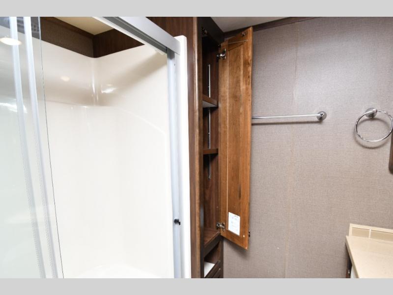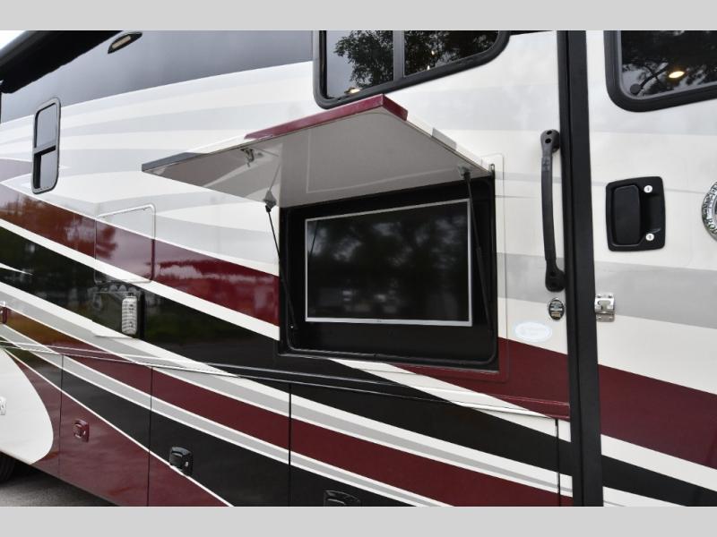 Ample exterior storage bays and power awning for outdoor relaxation