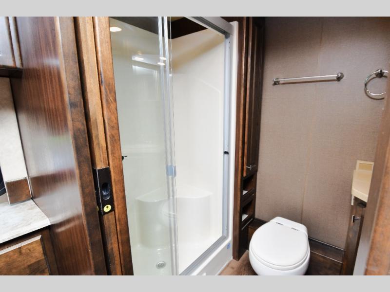 Bath-and-a-half floorplan with spacious main bathroom and convenient mid-coach half bath