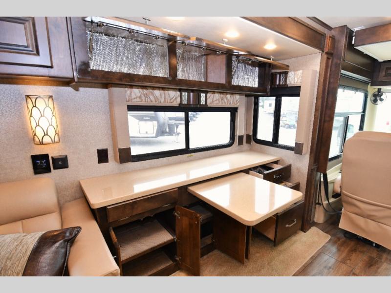 Dinette with computer workstation — perfect for remote work or hobbies on the road